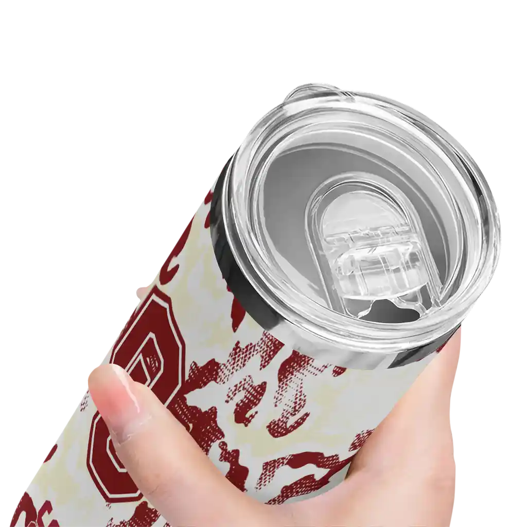 The Custom Oklahoma Sooners Claw Marks Crimson White Skinny Tumbler tumbler is the perfect way to stay refreshed while showing off your pride for Oklahoma Sooners. With its double-wall insulation, your drinks stay at the right temperature for hours, whether you're enjoying a hot coffee or keeping your iced drink cold. What's inside? You’ll find 1 stainless steel tumbler, 1 clear lid, and 1 removable straw. It's the perfect blend of function and fan spirit! Ergonomically designed for comfort, made from durable stainless steel, and insulated to maintain your drink’s temperature, this tumbler is a must-have for any dedicated NCAA fan.