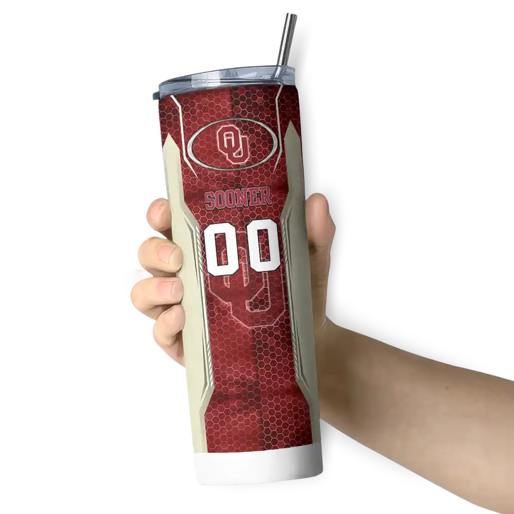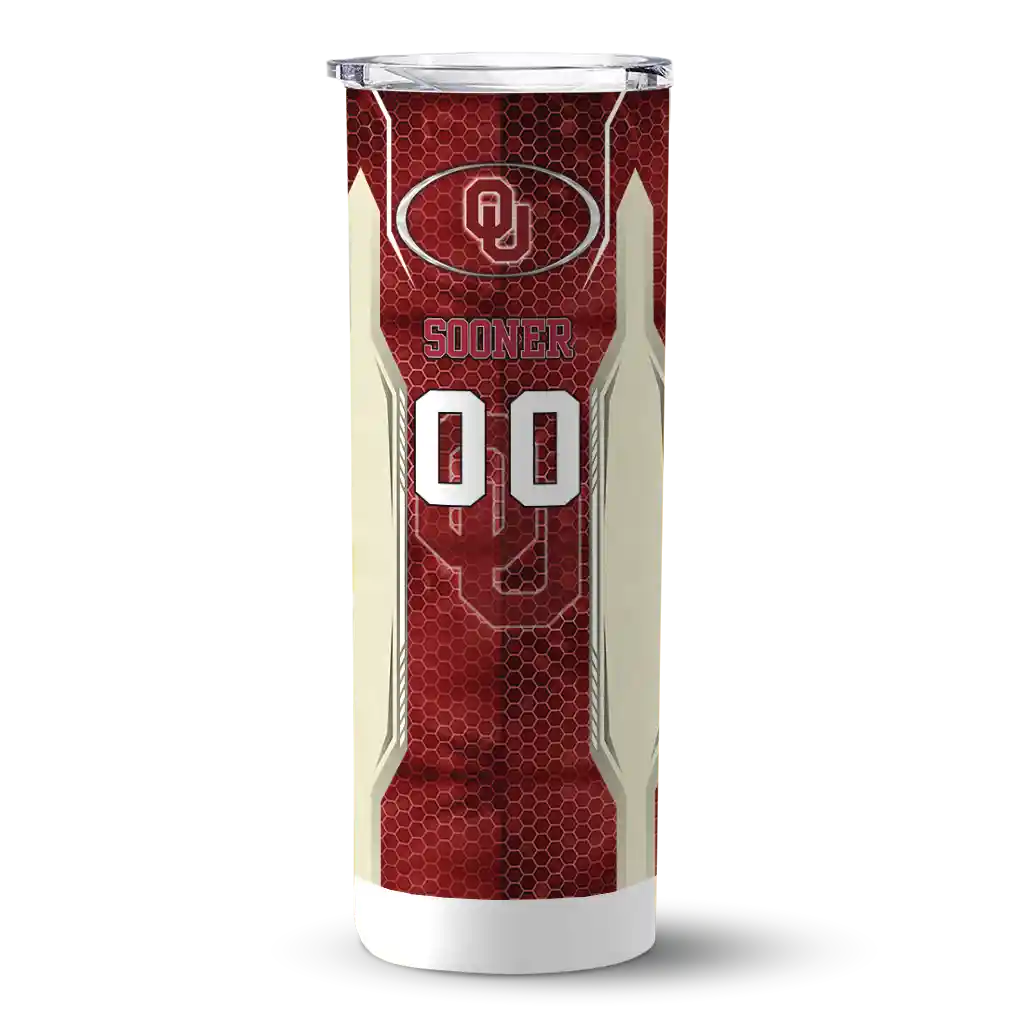 The Custom Oklahoma Sooners Chevron Patch Crimson Skinny Tumbler tumbler is the perfect way to stay refreshed while showing off your pride for Oklahoma Sooners. With its double-wall insulation, your drinks stay at the right temperature for hours, whether you're enjoying a hot coffee or keeping your iced drink cold. What's inside? You’ll find 1 stainless steel tumbler, 1 clear lid, and 1 removable straw. It's the perfect blend of function and fan spirit! Ergonomically designed for comfort, made from durable stainless steel, and insulated to maintain your drink’s temperature, this tumbler is a must-have for any dedicated NCAA fan.