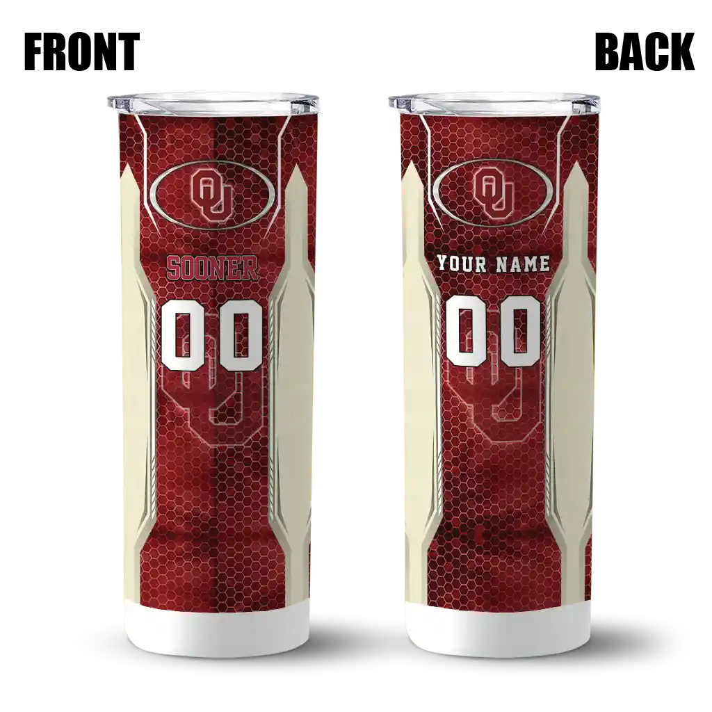 No question about it—the Customized Oklahoma Sooners Claw Cut Crimson Black Curved Tumbler is the ultimate way to stay refreshed while rocking your Oklahoma Sooners pride. From the stadium to your tailgate, or just chilling at home, this sleek tumbler makes sure you stay hydrated in style. What’s in the box? A stainless steel tumbler, clear lid, and removable straw—all the essentials for keeping your favorite drinks on point!