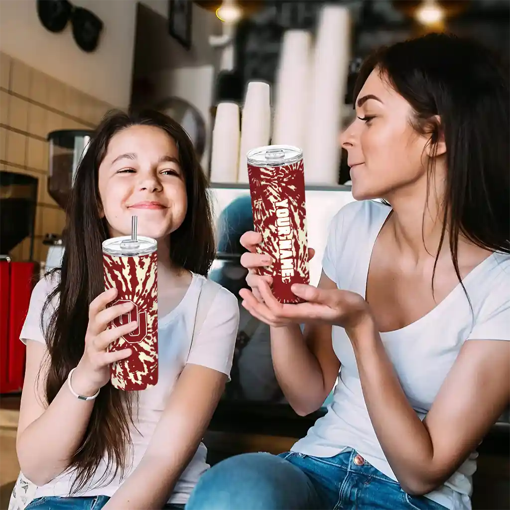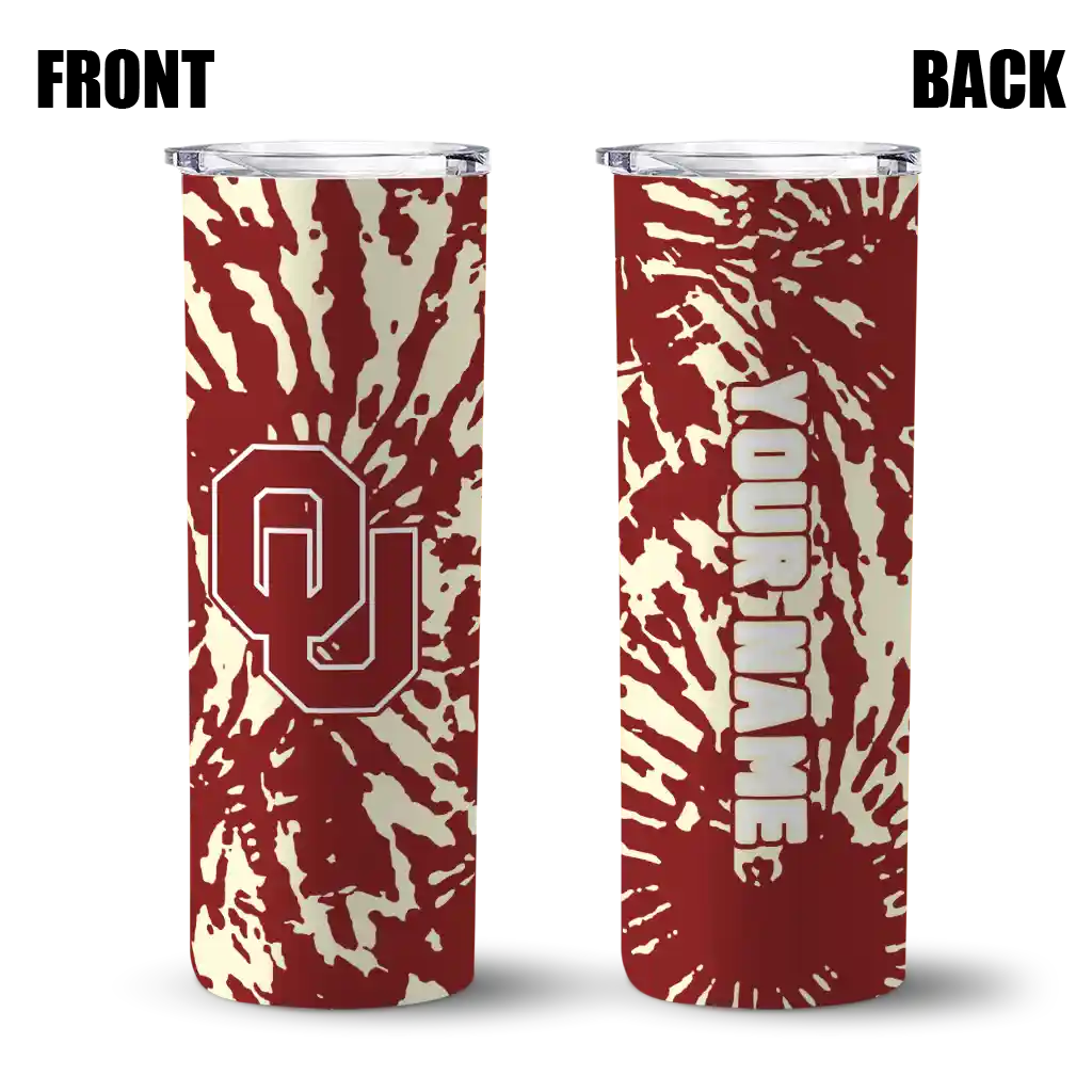 The Personalized Oklahoma Sooners Swirl Texture Crimson Skinny Tumbler tumbler is the perfect way to stay refreshed while showing off your pride for Oklahoma Sooners. With its double-wall insulation, your drinks stay at the right temperature for hours, whether you're enjoying a hot coffee or keeping your iced drink cold. What's inside? You’ll find 1 stainless steel tumbler, 1 clear lid, and 1 removable straw. It's the perfect blend of function and fan spirit! Ergonomically designed for comfort, made from durable stainless steel, and insulated to maintain your drink’s temperature, this tumbler is a must-have for any dedicated NCAA fan.