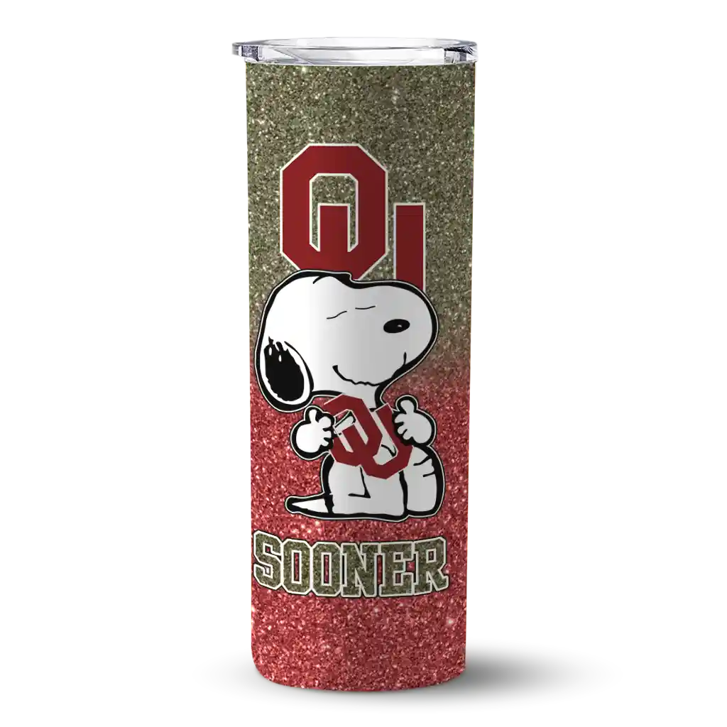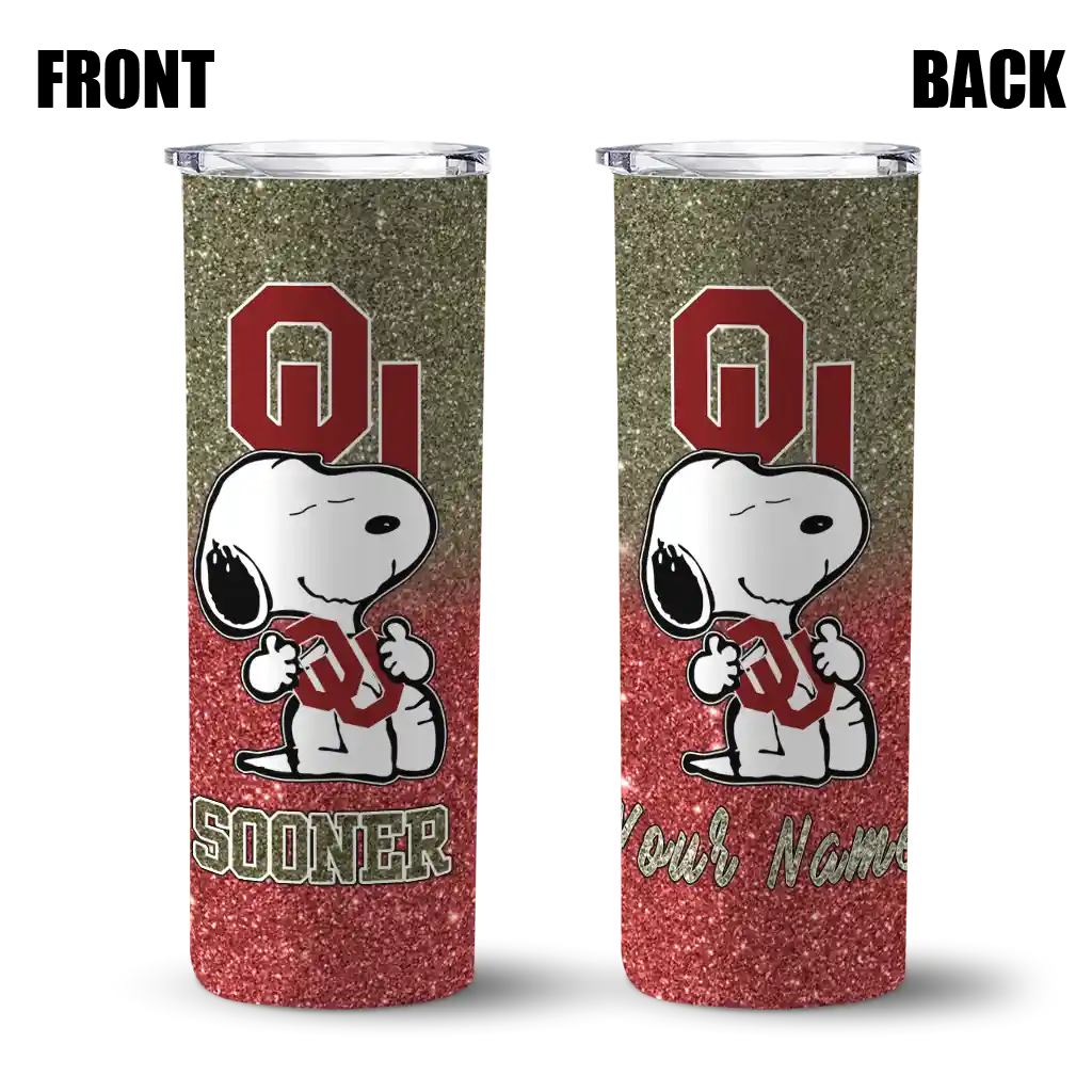 Personalized Oklahoma Sooners Snoopy Attitude Crimson Skinny Tumbler