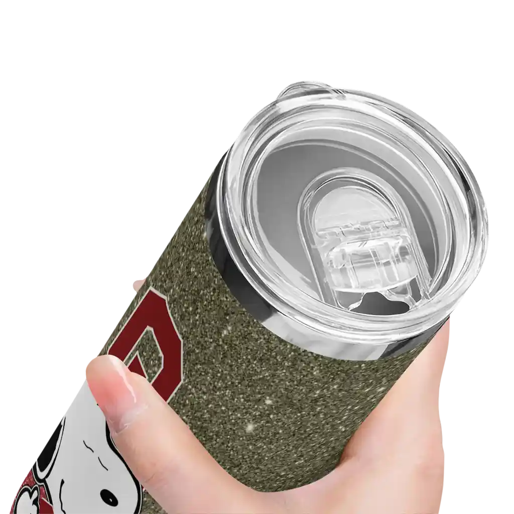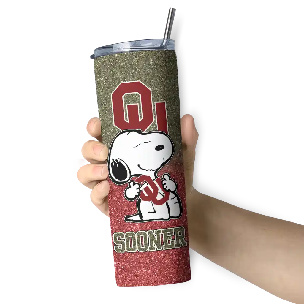 The Personalized Oklahoma Sooners Snoopy Attitude Crimson Skinny Tumbler tumbler is the perfect way to stay refreshed while showing off your pride for Oklahoma Sooners. With its double-wall insulation, your drinks stay at the right temperature for hours, whether you're enjoying a hot coffee or keeping your iced drink cold. What's inside? You’ll find 1 stainless steel tumbler, 1 clear lid, and 1 removable straw. It's the perfect blend of function and fan spirit! Ergonomically designed for comfort, made from durable stainless steel, and insulated to maintain your drink’s temperature, this tumbler is a must-have for any dedicated NCAA fan.