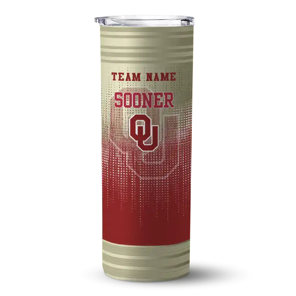 The Personalized Oklahoma Sooners Swirl Texture Crimson Skinny Tumbler tumbler is the perfect way to stay refreshed while showing off your pride for Oklahoma Sooners. With its double-wall insulation, your drinks stay at the right temperature for hours, whether you're enjoying a hot coffee or keeping your iced drink cold. What's inside? You’ll find 1 stainless steel tumbler, 1 clear lid, and 1 removable straw. It's the perfect blend of function and fan spirit! Ergonomically designed for comfort, made from durable stainless steel, and insulated to maintain your drink’s temperature, this tumbler is a must-have for any dedicated NCAA fan.