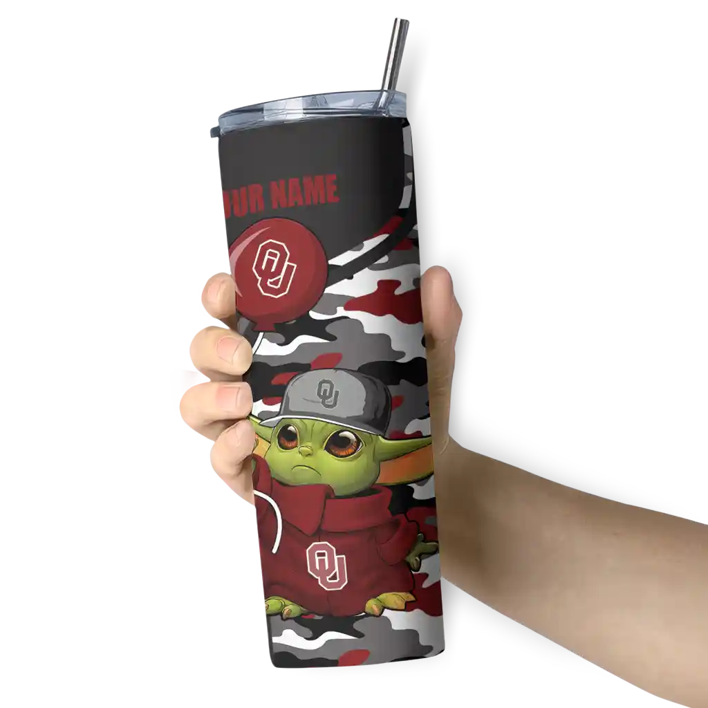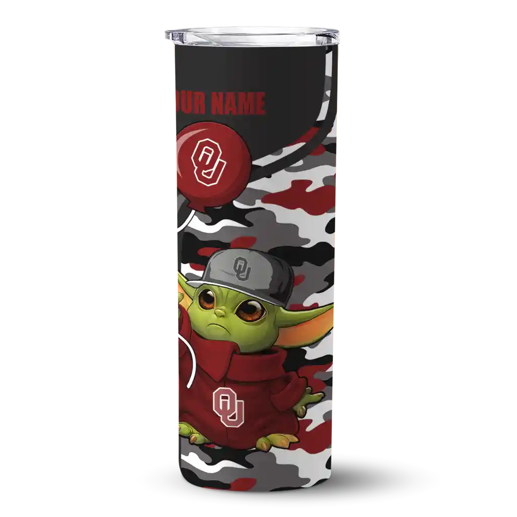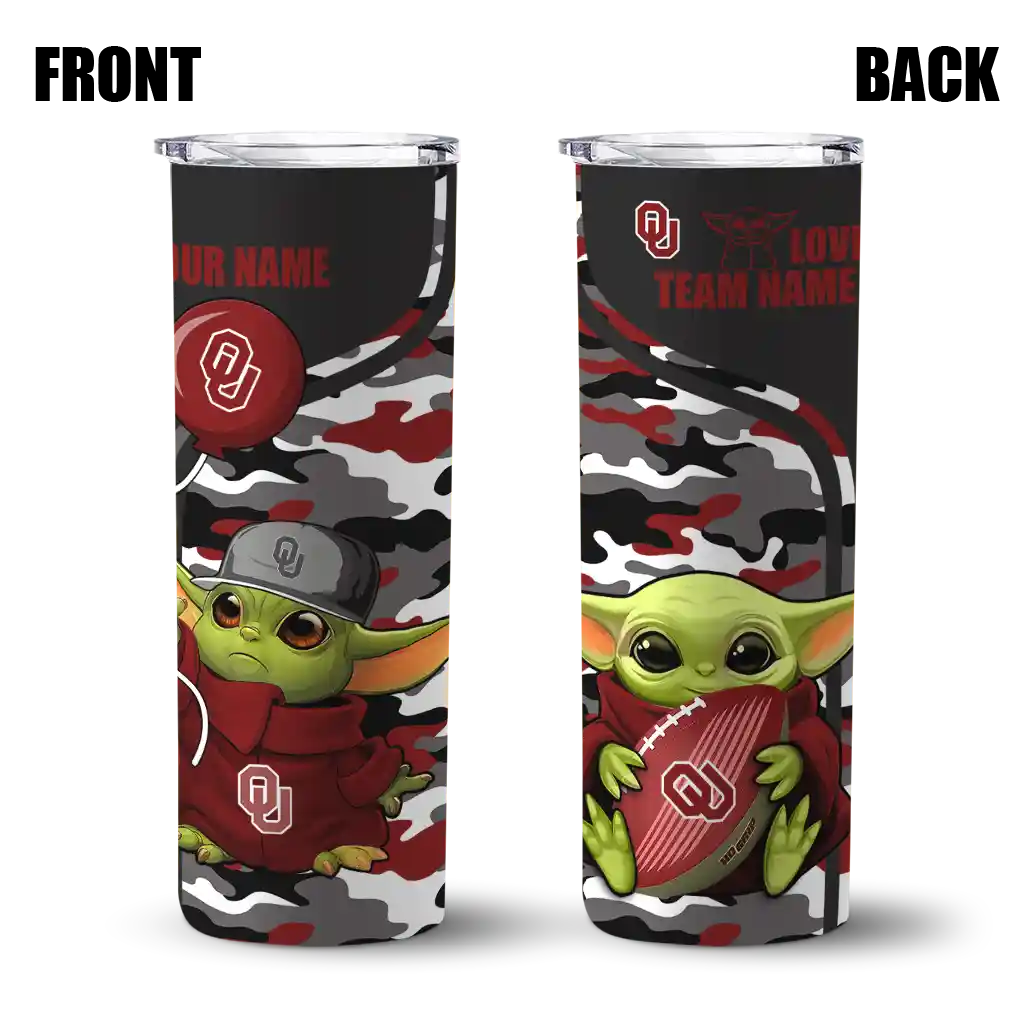 Oklahoma Sooners Tumber – Personalized Yoda Camo Skinny Crimson Black