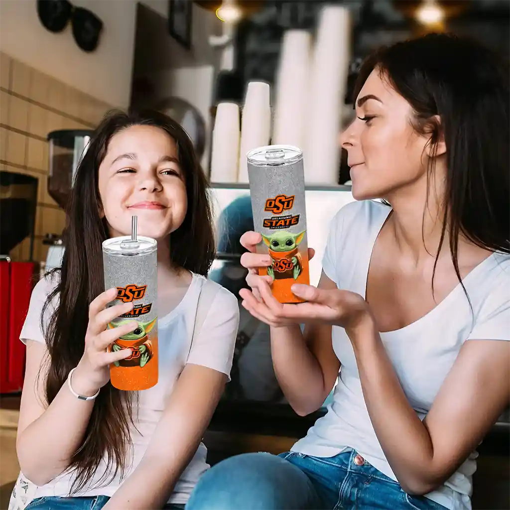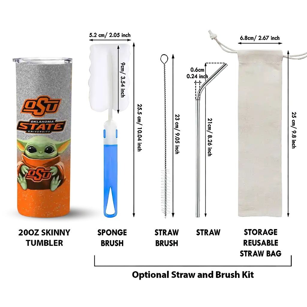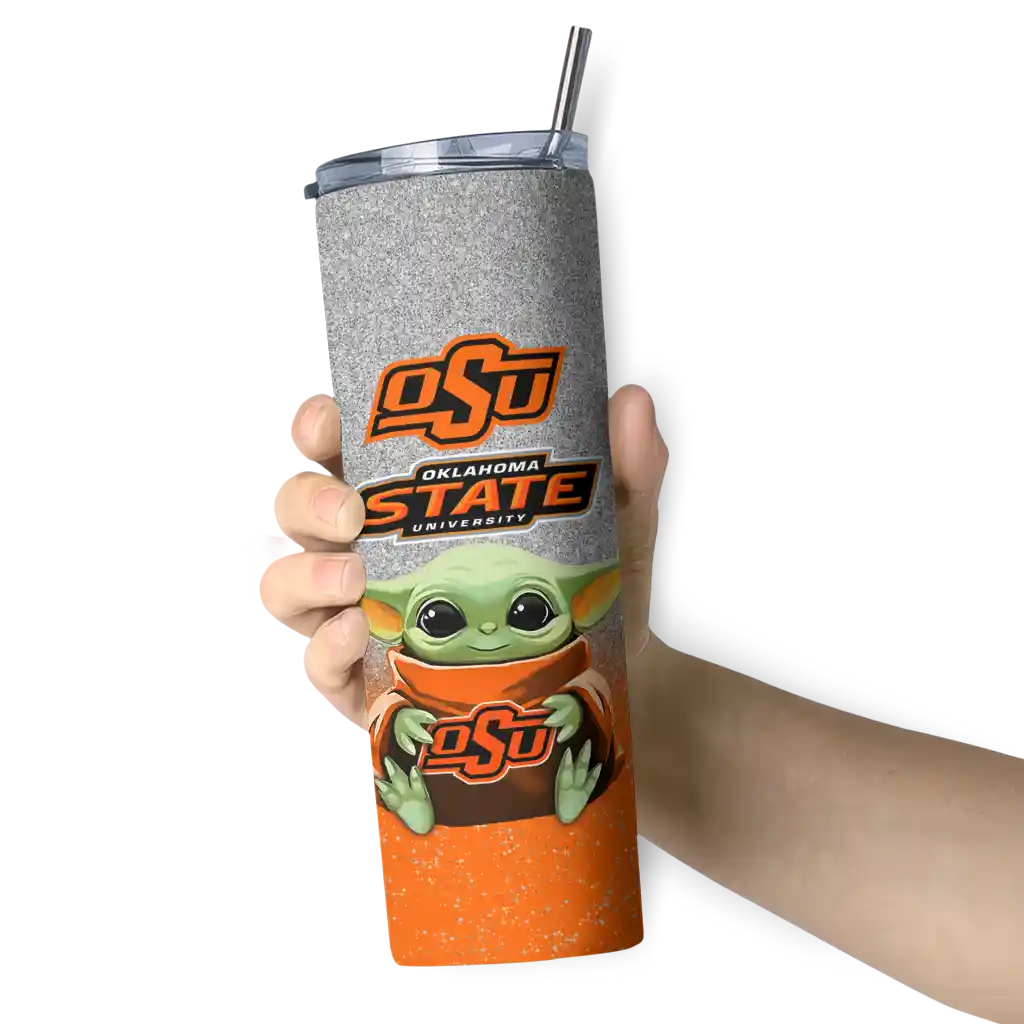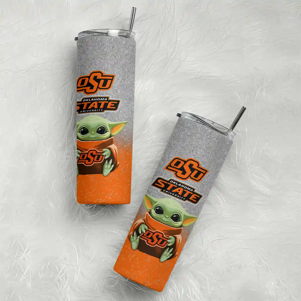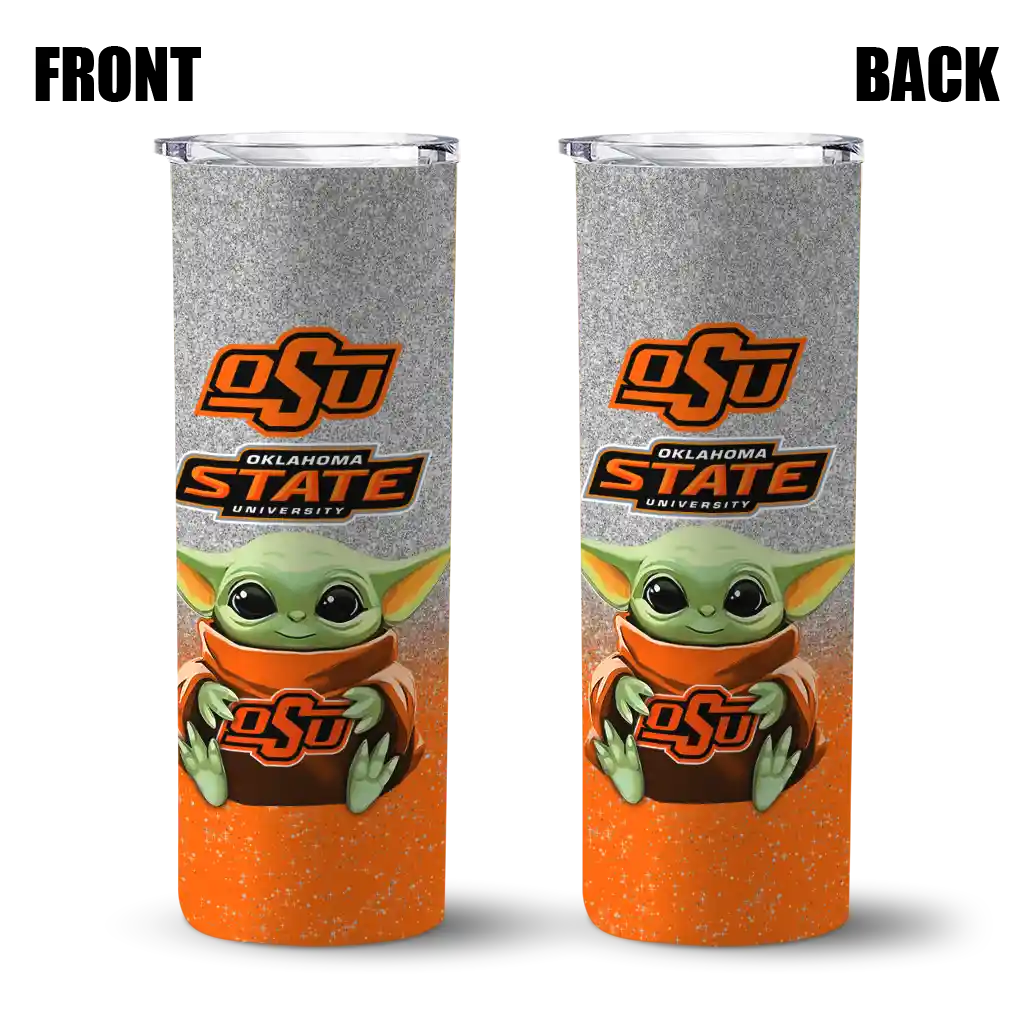 The Customized Oklahoma State Cowboys Yoda Cozy Orange Black Skinny Tumbler tumbler is the perfect way to stay refreshed while showing off your pride for Oklahoma State Cowboys. With its double-wall insulation, your drinks stay at the right temperature for hours, whether you're enjoying a hot coffee or keeping your iced drink cold. What's inside? You’ll find 1 stainless steel tumbler, 1 clear lid, and 1 removable straw. It's the perfect blend of function and fan spirit! Ergonomically designed for comfort, made from durable stainless steel, and insulated to maintain your drink’s temperature, this tumbler is a must-have for any dedicated NCAA fan.