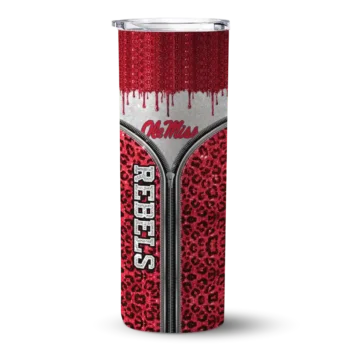 Custom Ole Miss Rebels Zipper Leopard Red Skinny Tumbler $28.99