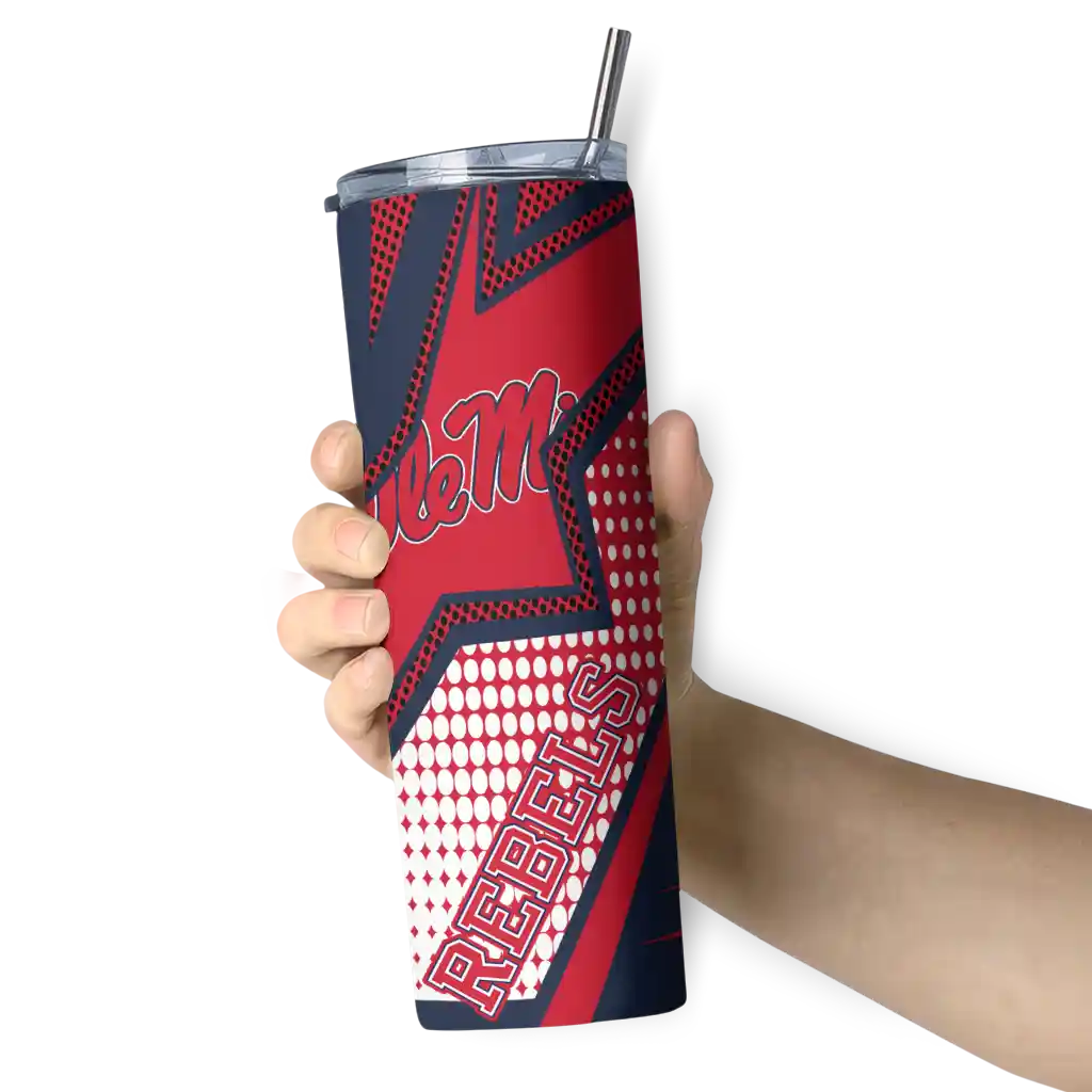 Introducing the Ole Miss Rebels Tumblers from NCAA Fan Pro —where fan pride meets practical design. This slim tumbler is created for NCAA fans who want their drinks at the perfect temperature while displaying their school pride. The double-wall insulation ensures your hot beverages stay warm and your cold drinks stay chilled for hours, so you can enjoy your drinks at their best, whether you're at a game, tailgate, or on the go.