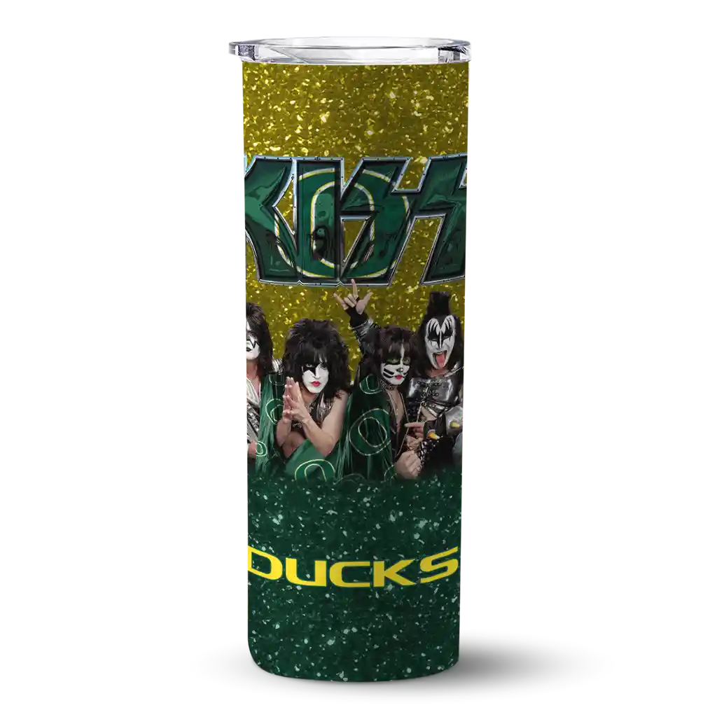The Personalized Oregon Ducks Kiss Band Yellow Skinny Tumbler tumbler is the perfect way to stay refreshed while showing off your pride for Oregon Ducks. With its double-wall insulation, your drinks stay at the right temperature for hours, whether you're enjoying a hot coffee or keeping your iced drink cold. What's inside? You’ll find 1 stainless steel tumbler, 1 clear lid, and 1 removable straw. It's the perfect blend of function and fan spirit! Ergonomically designed for comfort, made from durable stainless steel, and insulated to maintain your drink’s temperature, this tumbler is a must-have for any dedicated NCAA fan.