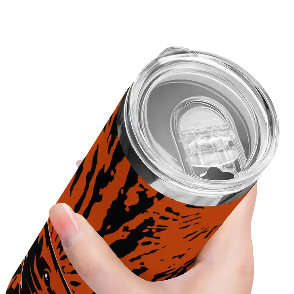 The Customized Oregon State Beavers Helmet Belt Orange Black Skinny Tumbler tumbler is the perfect way to stay refreshed while showing off your pride for Oregon State Beavers. With its double-wall insulation, your drinks stay at the right temperature for hours, whether you're enjoying a hot coffee or keeping your iced drink cold. What's inside? You’ll find 1 stainless steel tumbler, 1 clear lid, and 1 removable straw. It's the perfect blend of function and fan spirit! Ergonomically designed for comfort, made from durable stainless steel, and insulated to maintain your drink’s temperature, this tumbler is a must-have for any dedicated NCAA fan.