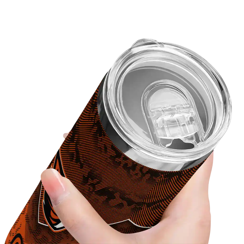 The Customized Oregon State Beavers Helmet Belt Orange Black Skinny Tumbler tumbler is the perfect way to stay refreshed while showing off your pride for Oregon State Beavers. With its double-wall insulation, your drinks stay at the right temperature for hours, whether you're enjoying a hot coffee or keeping your iced drink cold. What's inside? You’ll find 1 stainless steel tumbler, 1 clear lid, and 1 removable straw. It's the perfect blend of function and fan spirit! Ergonomically designed for comfort, made from durable stainless steel, and insulated to maintain your drink’s temperature, this tumbler is a must-have for any dedicated NCAA fan.