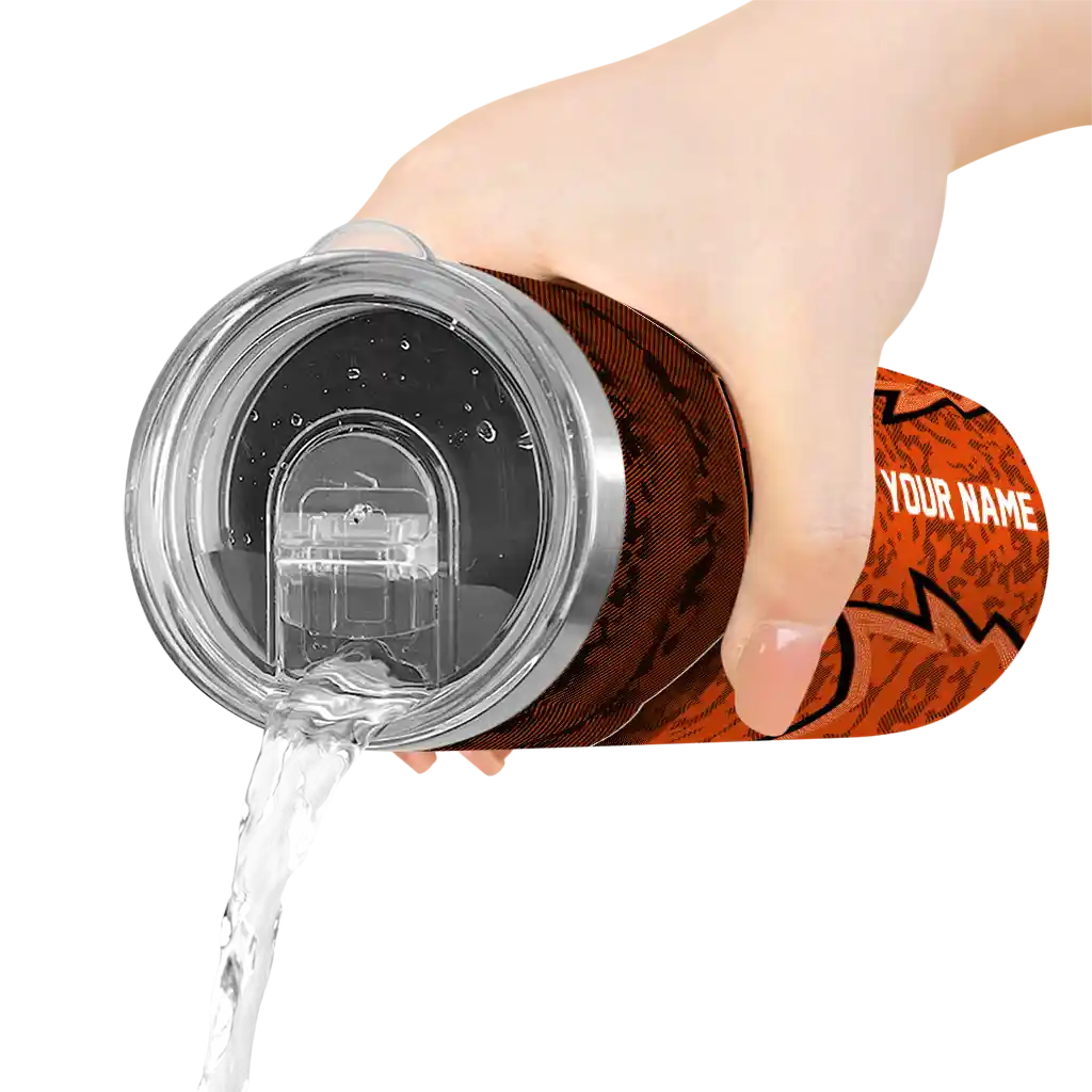 The Customized Oregon State Beavers Star Pop Orange Black Skinny Tumbler tumbler is the perfect way to stay refreshed while showing off your pride for Oregon State Beavers. With its double-wall insulation, your drinks stay at the right temperature for hours, whether you're enjoying a hot coffee or keeping your iced drink cold. What's inside? You’ll find 1 stainless steel tumbler, 1 clear lid, and 1 removable straw. It's the perfect blend of function and fan spirit! Ergonomically designed for comfort, made from durable stainless steel, and insulated to maintain your drink’s temperature, this tumbler is a must-have for any dedicated NCAA fan.