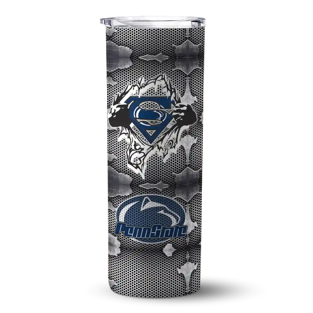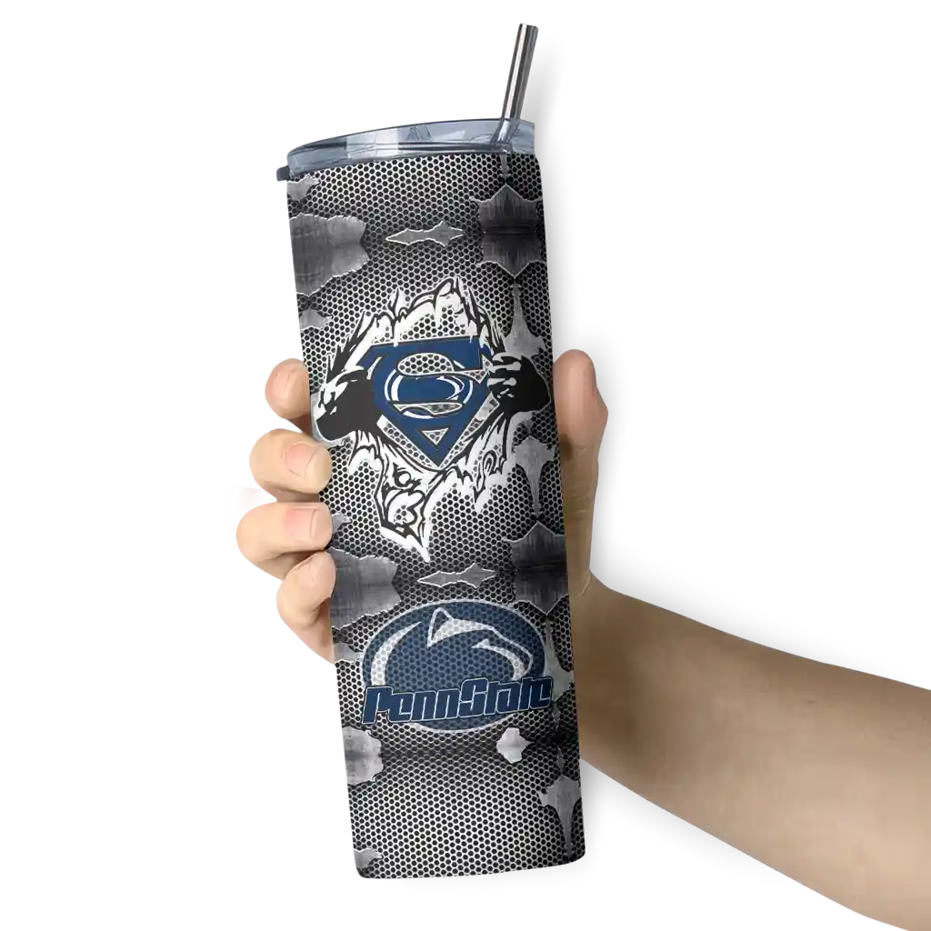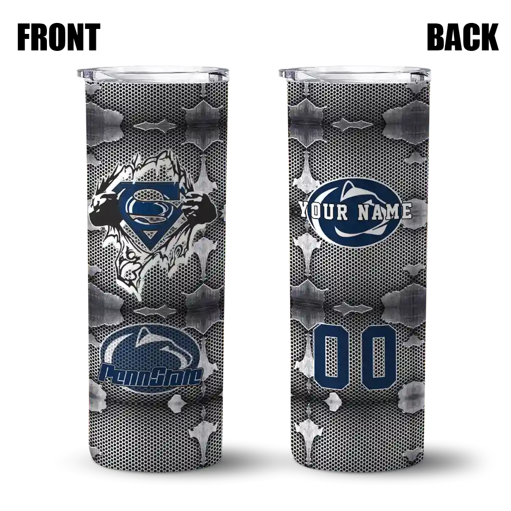 The Custom Penn State Nittany Lions Chevron V Blue Gray Skinny Tumbler tumbler is the perfect way to stay refreshed while showing off your pride for Penn State Nittany Lions. With its double-wall insulation, your drinks stay at the right temperature for hours, whether you're enjoying a hot coffee or keeping your iced drink cold. What's inside? You’ll find 1 stainless steel tumbler, 1 clear lid, and 1 removable straw. It's the perfect blend of function and fan spirit! Ergonomically designed for comfort, made from durable stainless steel, and insulated to maintain your drink’s temperature, this tumbler is a must-have for any dedicated NCAA fan.