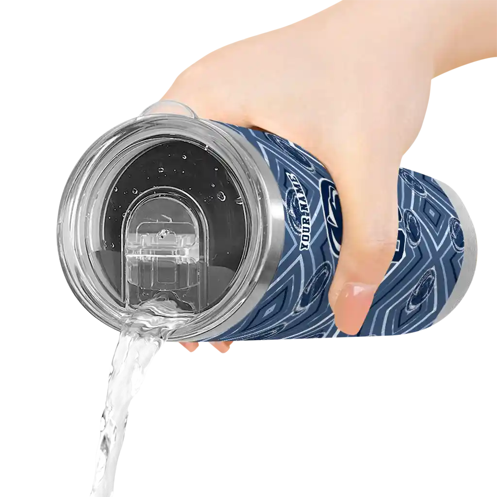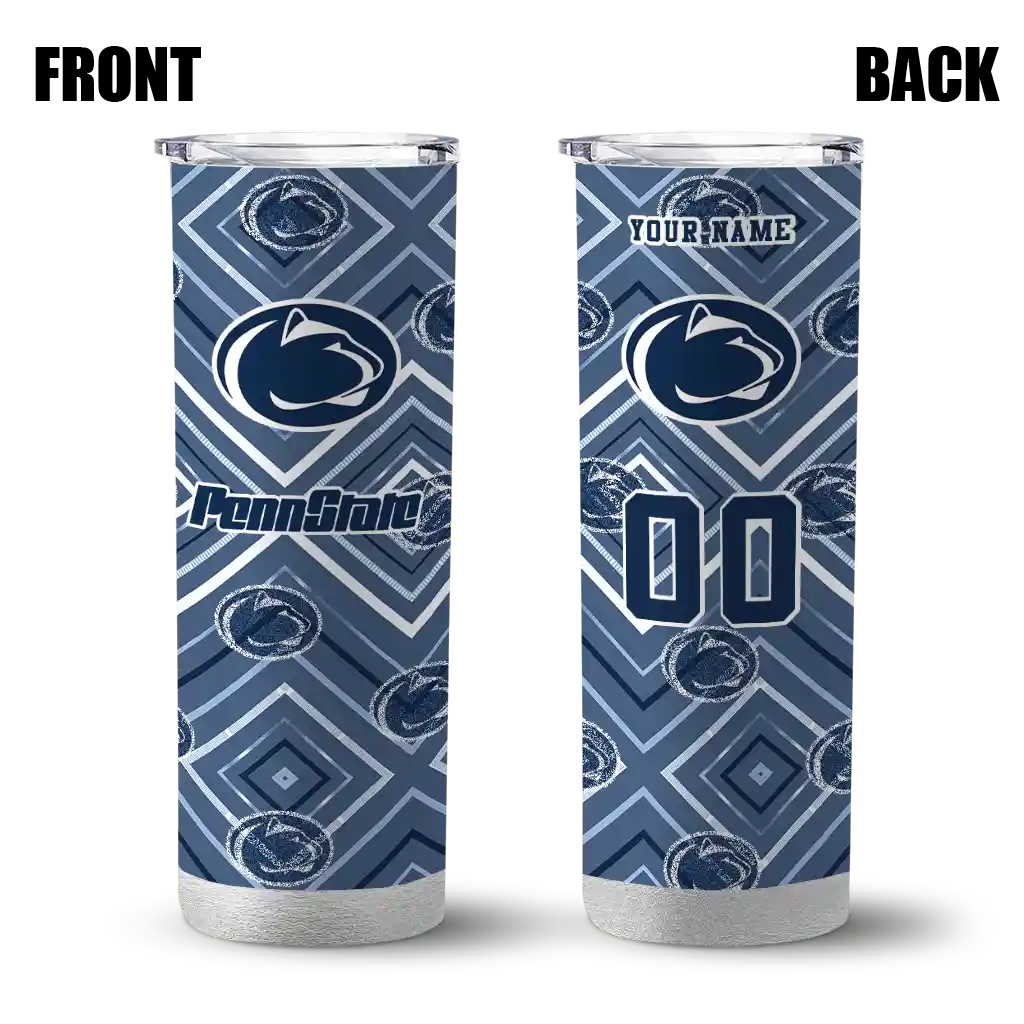 The Custom Penn State Nittany Lions Zipper Leopard Blue Skinny Tumbler tumbler is the perfect way to stay refreshed while showing off your pride for Penn State Nittany Lions. With its double-wall insulation, your drinks stay at the right temperature for hours, whether you're enjoying a hot coffee or keeping your iced drink cold. What's inside? You’ll find 1 stainless steel tumbler, 1 clear lid, and 1 removable straw. It's the perfect blend of function and fan spirit! Ergonomically designed for comfort, made from durable stainless steel, and insulated to maintain your drink’s temperature, this tumbler is a must-have for any dedicated NCAA fan.