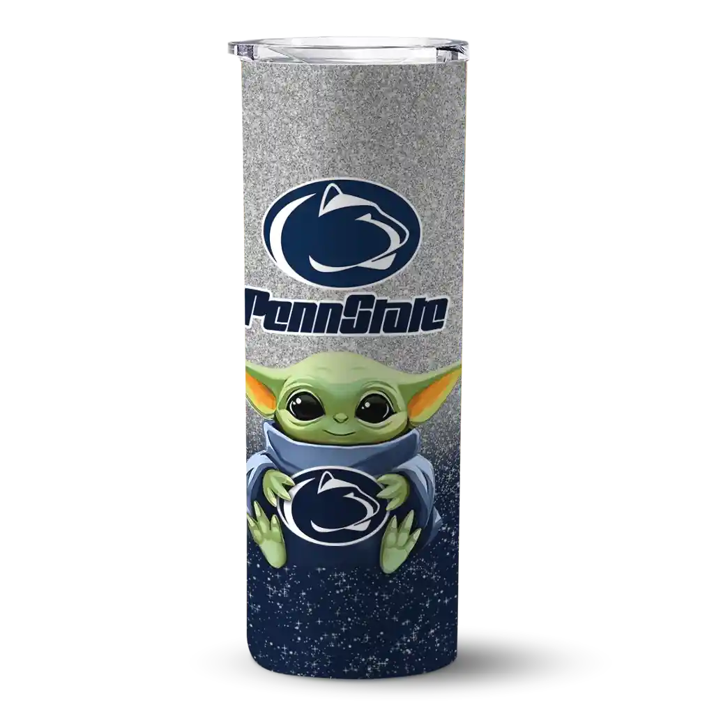 The Penn State Nittany Lions Yoda Smile Blue Skinny Tumbler tumbler is the perfect way to stay refreshed while showing off your pride for Penn State Nittany Lions. With its double-wall insulation, your drinks stay at the right temperature for hours, whether you're enjoying a hot coffee or keeping your iced drink cold. What's inside? You’ll find 1 stainless steel tumbler, 1 clear lid, and 1 removable straw. It's the perfect blend of function and fan spirit! Ergonomically designed for comfort, made from durable stainless steel, and insulated to maintain your drink’s temperature, this tumbler is a must-have for any dedicated NCAA fan.