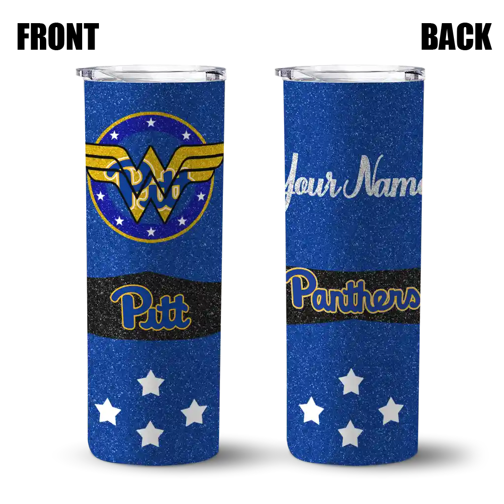 The Custom Pittsburgh Panthers Sparkle Drip Royal Blue Skinny Tumbler tumbler is the perfect way to stay refreshed while showing off your pride for Pittsburgh Panthers. With its double-wall insulation, your drinks stay at the right temperature for hours, whether you're enjoying a hot coffee or keeping your iced drink cold. What's inside? You’ll find 1 stainless steel tumbler, 1 clear lid, and 1 removable straw. It's the perfect blend of function and fan spirit! Ergonomically designed for comfort, made from durable stainless steel, and insulated to maintain your drink’s temperature, this tumbler is a must-have for any dedicated NCAA fan.