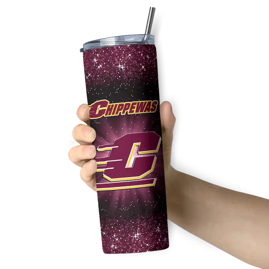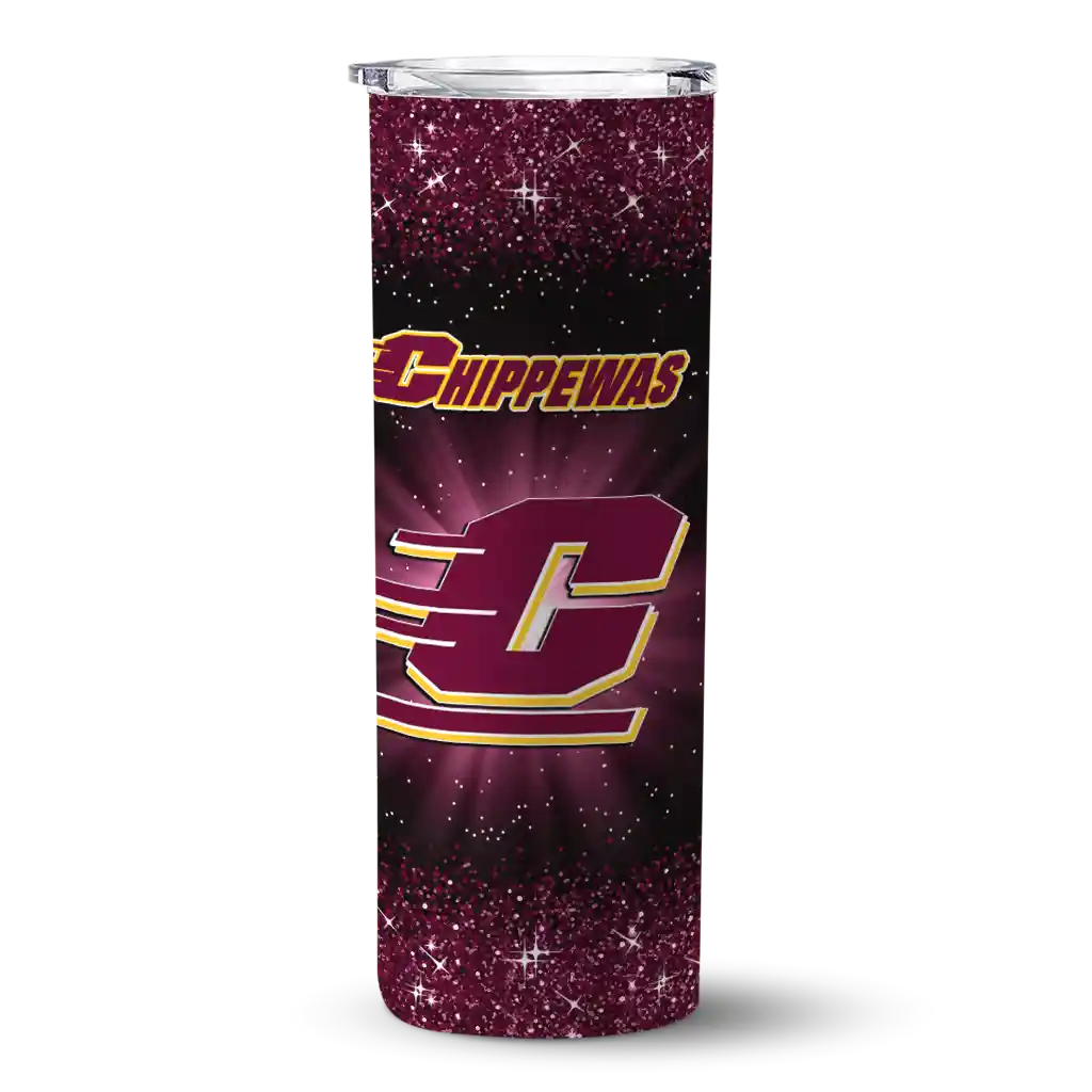 Central Michigan Chippewas Radiant Glitter Maroon Skinny Tumbler