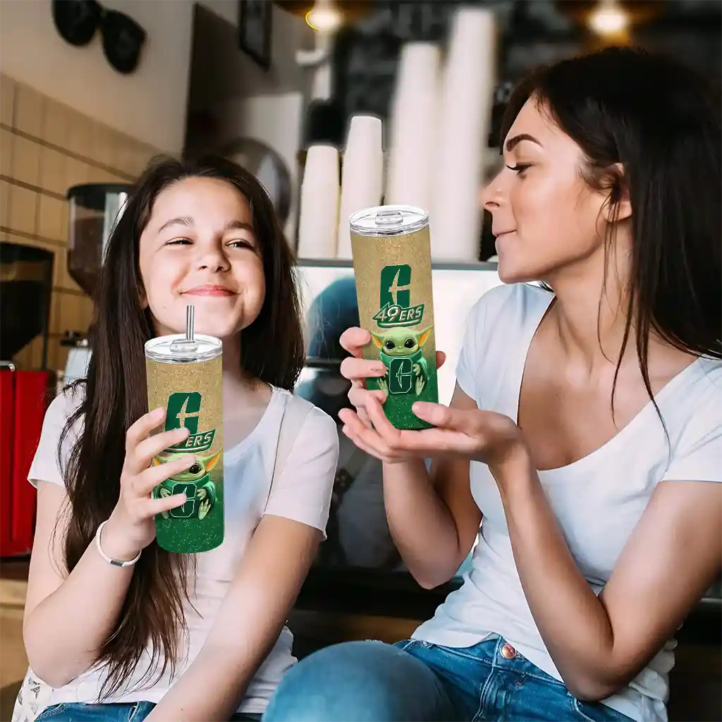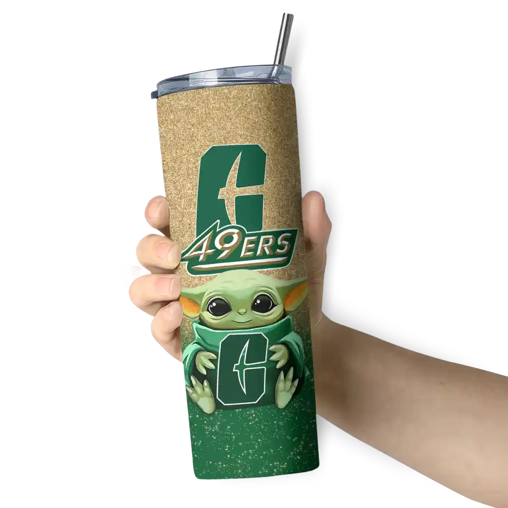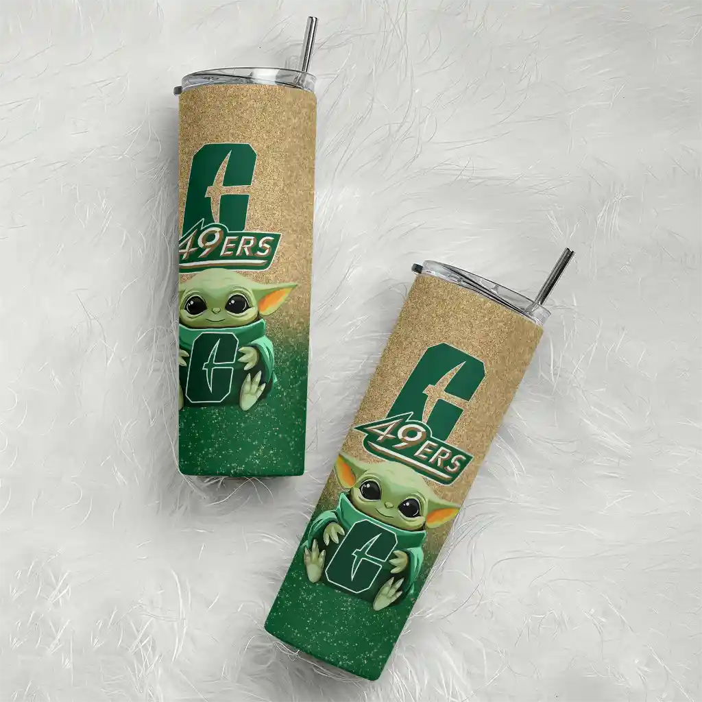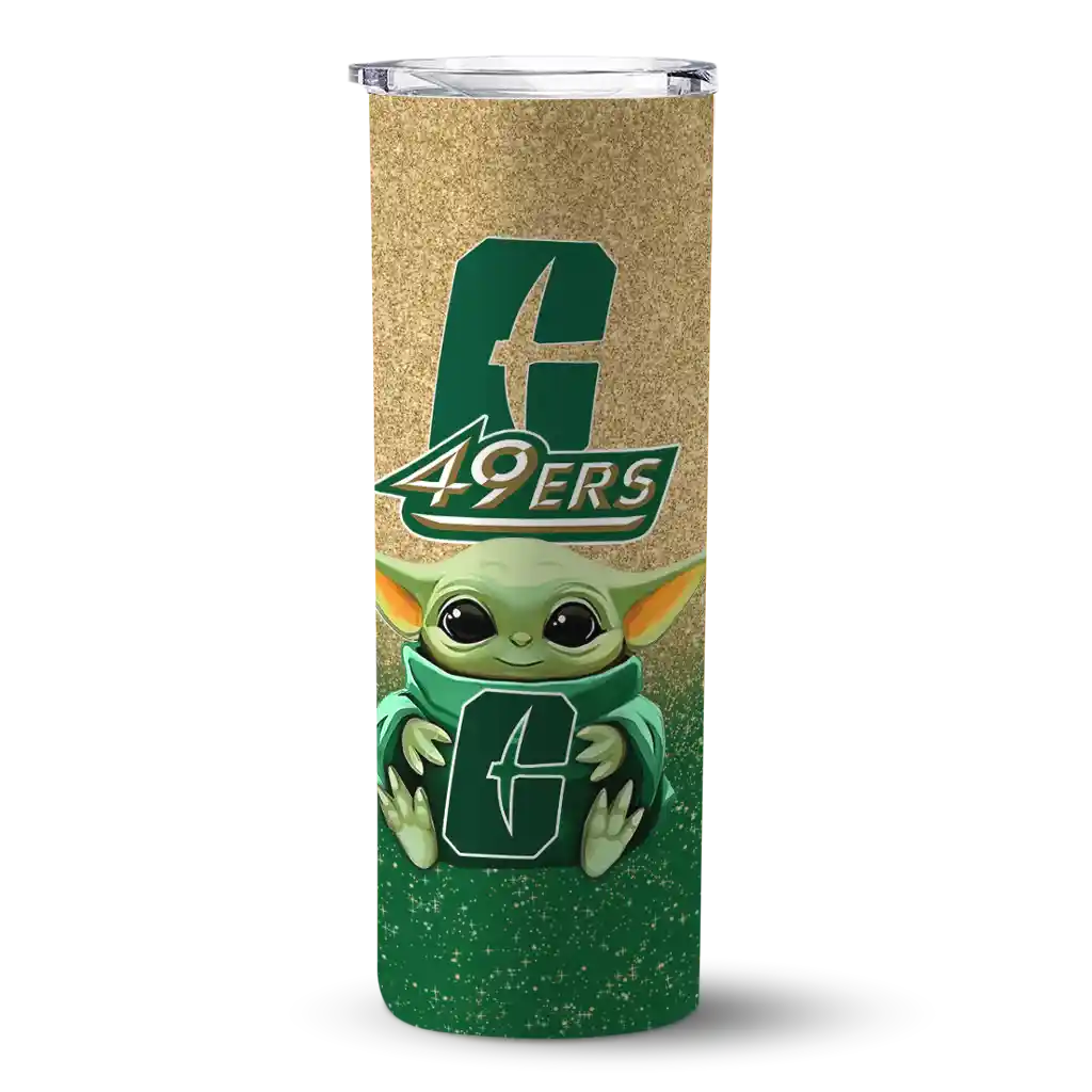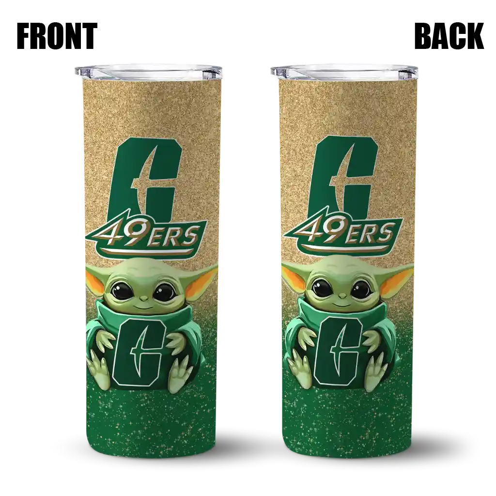 Charlotte 49ers Yoda Smile Green Skinny Tumbler