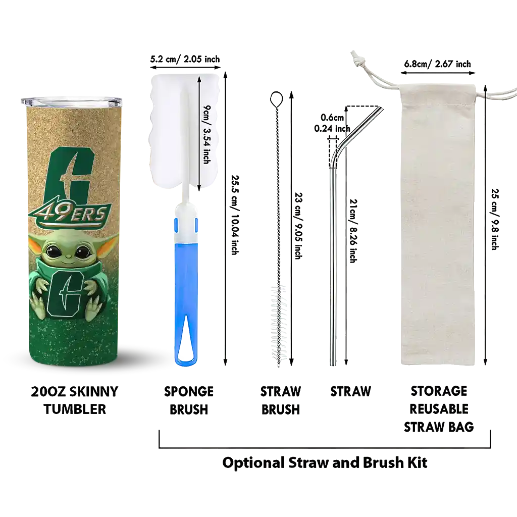 The Charlotte 49ers Yoda Smile Green Skinny Tumbler tumbler is the perfect way to stay refreshed while showing off your pride for Charlotte 49ers. With its double-wall insulation, your drinks stay at the right temperature for hours, whether you're enjoying a hot coffee or keeping your iced drink cold. What's inside? You’ll find 1 stainless steel tumbler, 1 clear lid, and 1 removable straw. It's the perfect blend of function and fan spirit! Ergonomically designed for comfort, made from durable stainless steel, and insulated to maintain your drink’s temperature, this tumbler is a must-have for any dedicated NCAA fan.