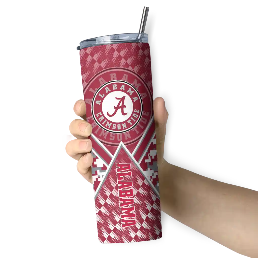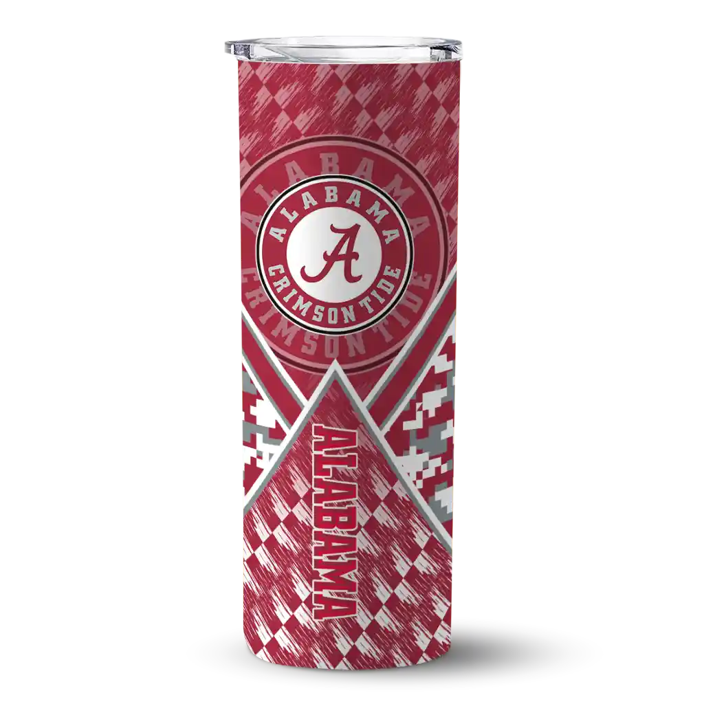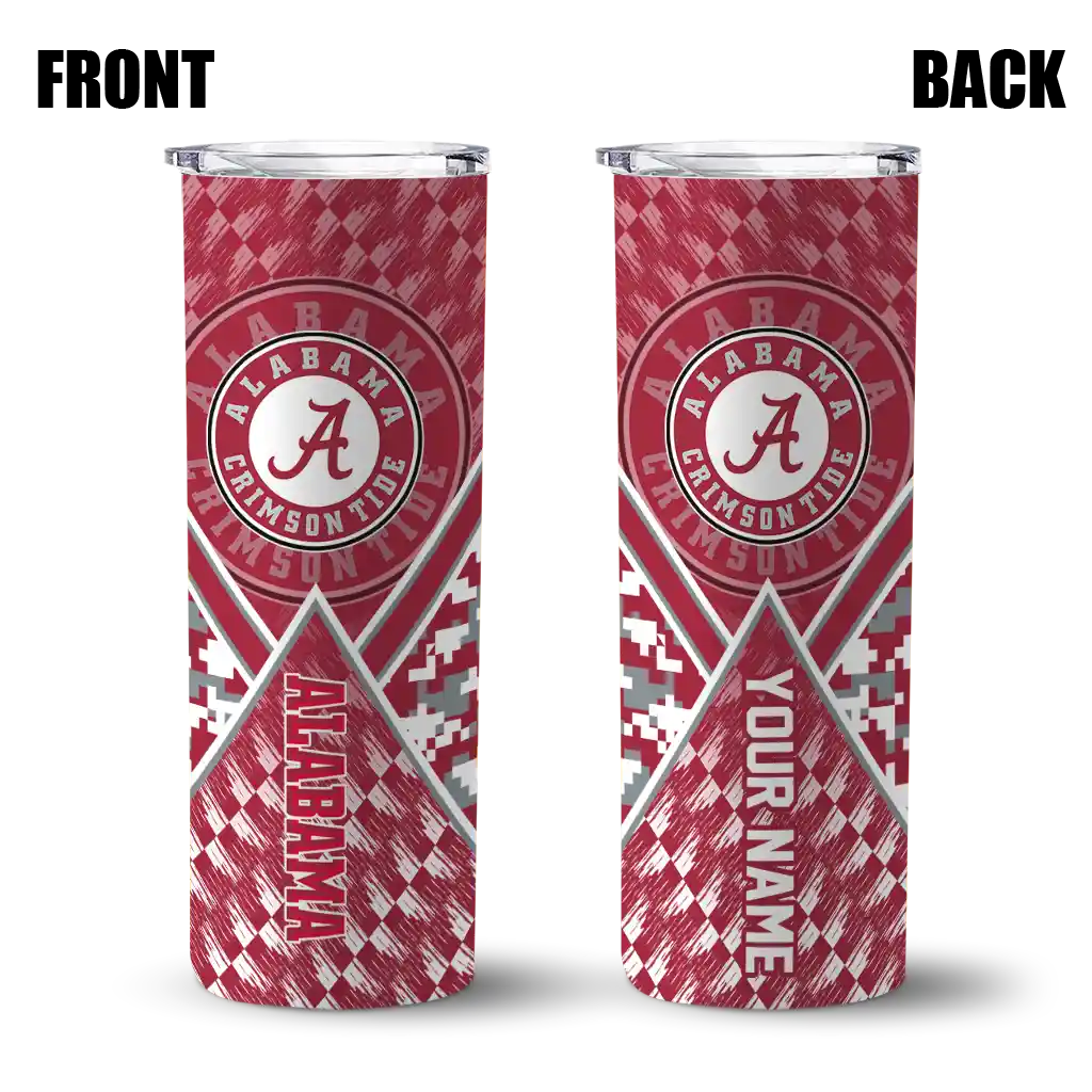 The Personalized Alabama Crimson Tide Stacked Diamond Crimson Skinny Tumbler tumbler is the perfect way to stay refreshed while showing off your pride for Alabama Crimson Tide. With its double-wall insulation, your drinks stay at the right temperature for hours, whether you're enjoying a hot coffee or keeping your iced drink cold. What's inside? You’ll find 1 stainless steel tumbler, 1 clear lid, and 1 removable straw. It's the perfect blend of function and fan spirit! Ergonomically designed for comfort, made from durable stainless steel, and insulated to maintain your drink’s temperature, this tumbler is a must-have for any dedicated NCAA fan.