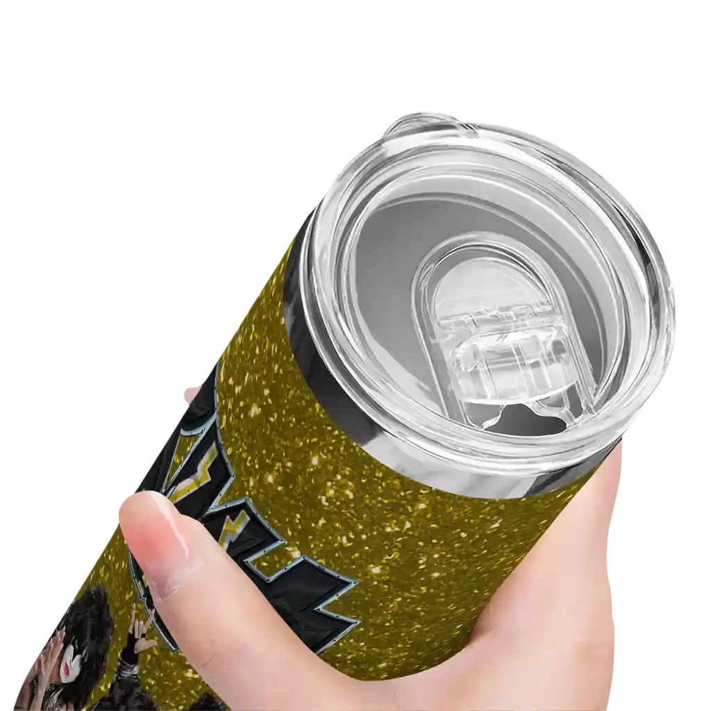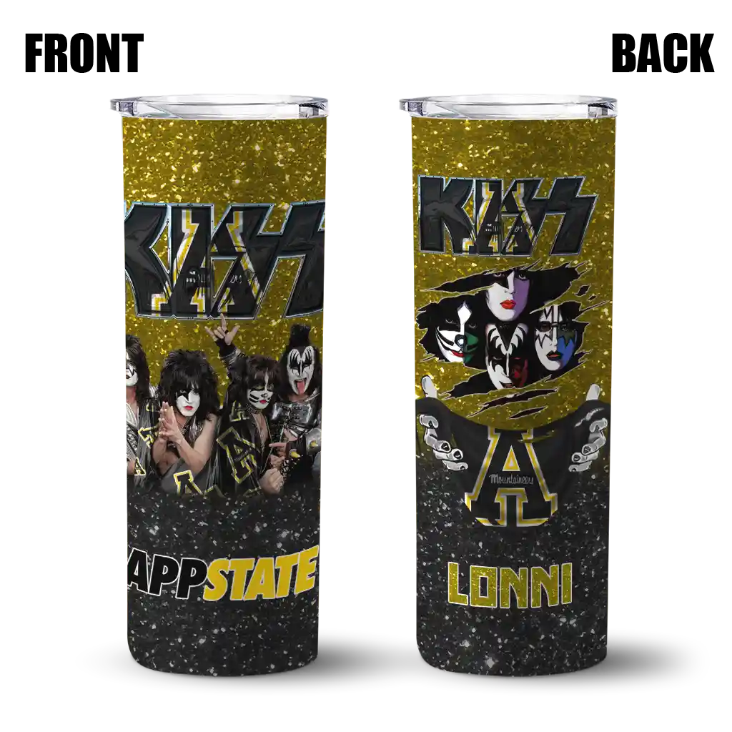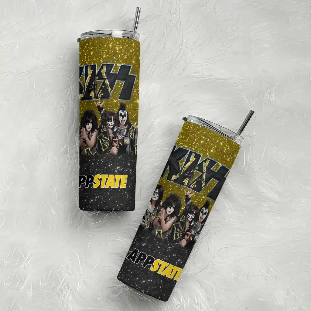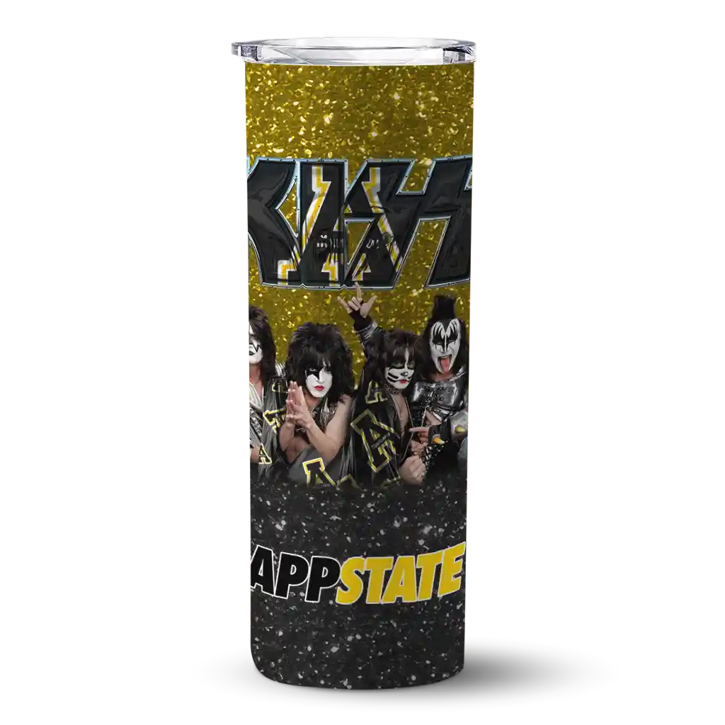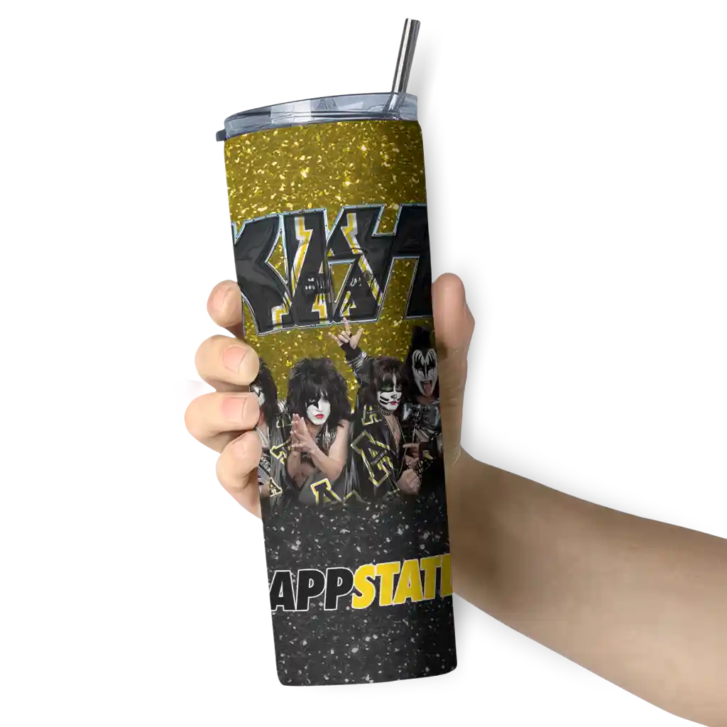 Custom Appalachian State Mountaineers Kiss Band Gold Skinny Tumbler