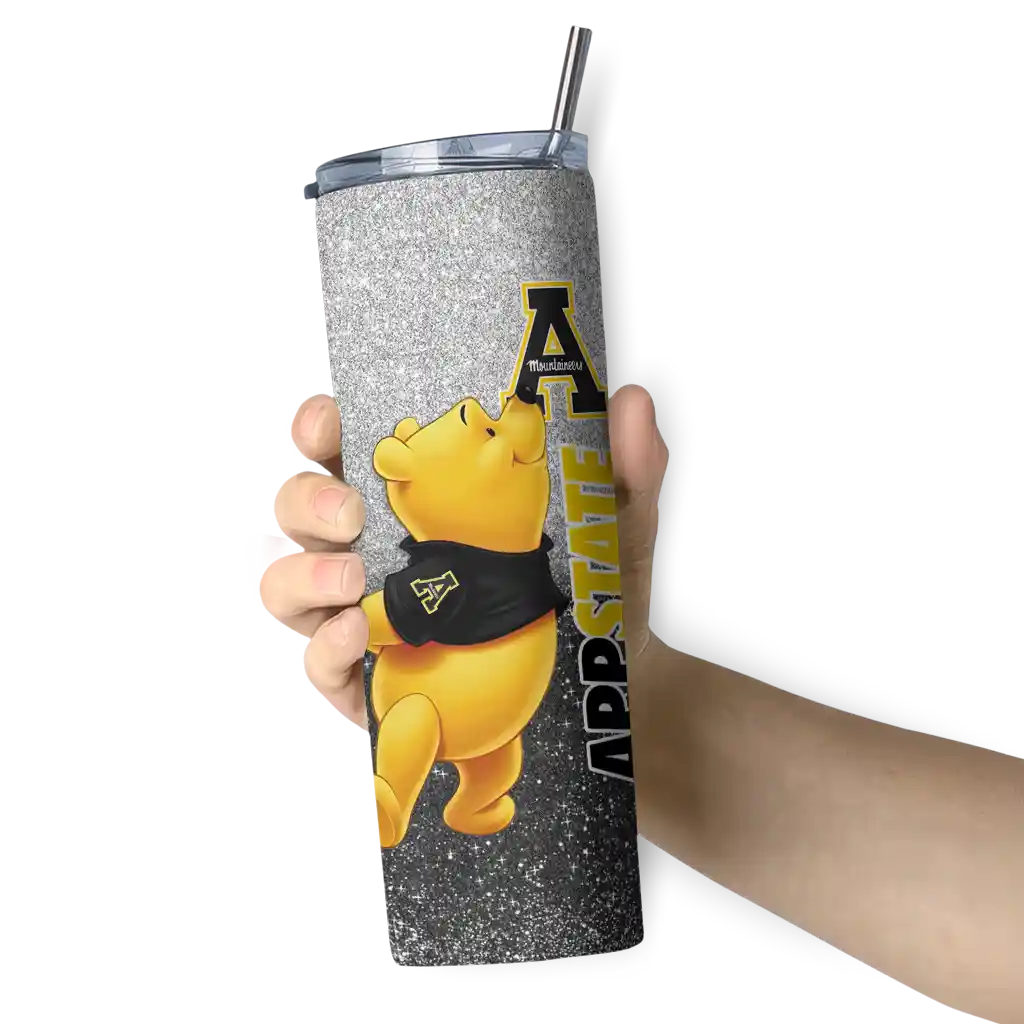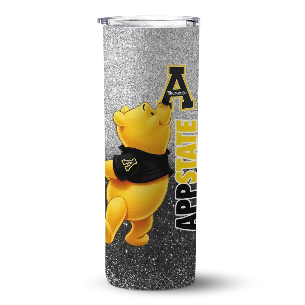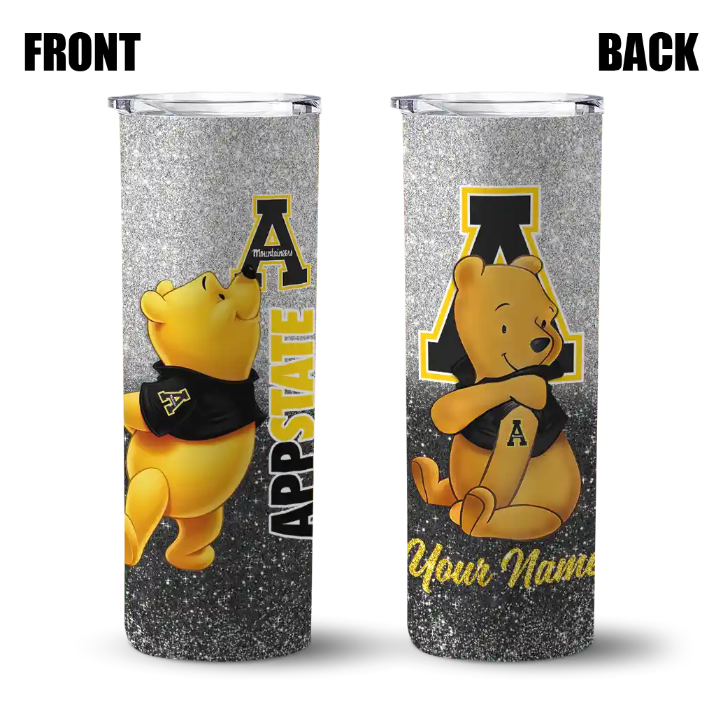 Custom Appalachian State Mountaineers Winnie the Pooh Black Gray Skinny Tumbler
