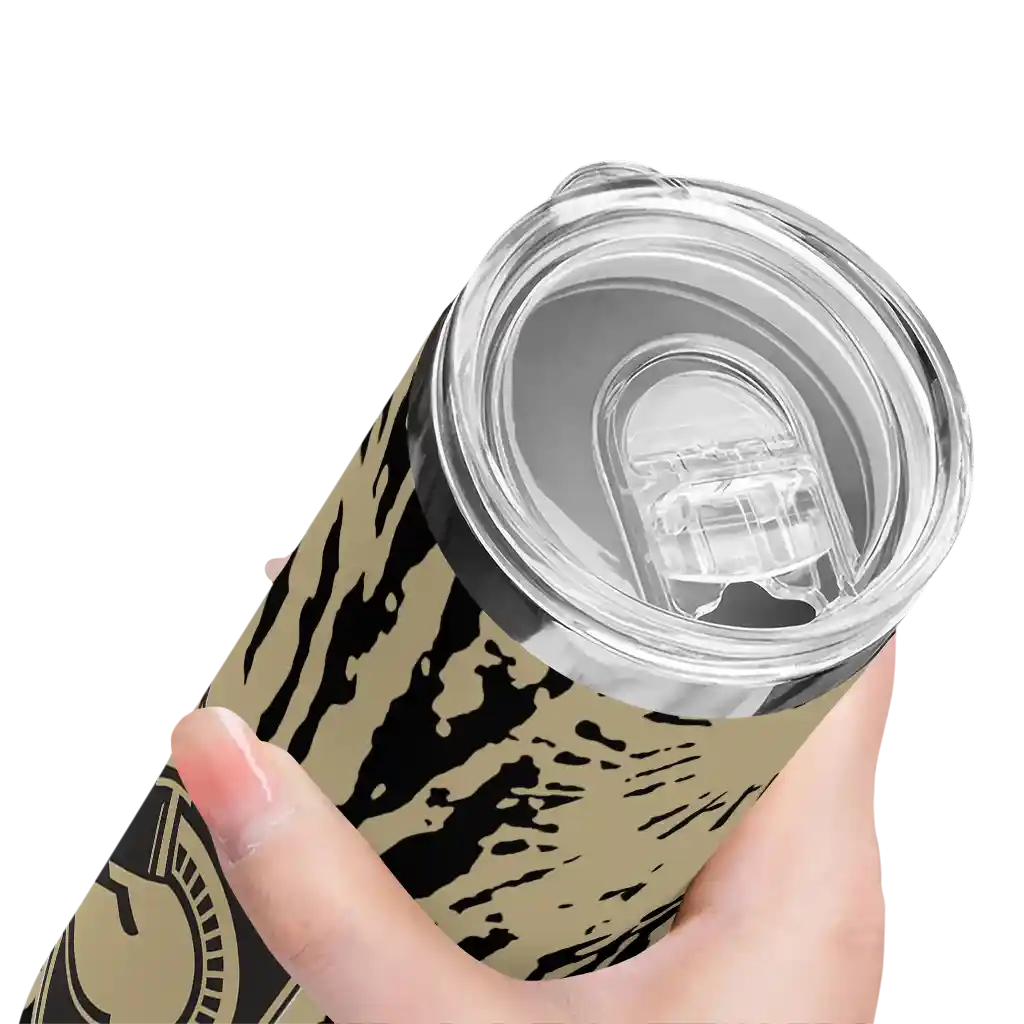 The Custom Army Black Knights Metallic Grid Gold Skinny Tumbler tumbler is the perfect way to stay refreshed while showing off your pride for Army Black Knights. With its double-wall insulation, your drinks stay at the right temperature for hours, whether you're enjoying a hot coffee or keeping your iced drink cold. What's inside? You’ll find 1 stainless steel tumbler, 1 clear lid, and 1 removable straw. It's the perfect blend of function and fan spirit! Ergonomically designed for comfort, made from durable stainless steel, and insulated to maintain your drink’s temperature, this tumbler is a must-have for any dedicated NCAA fan.