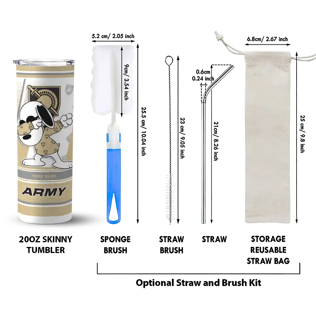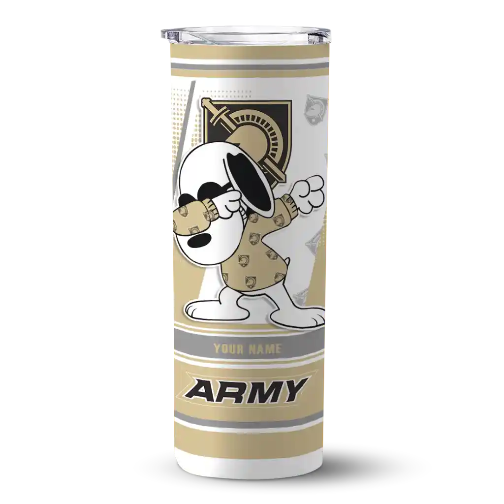 Custom Army Black Knights Snoopy Dog Gold White Skinny Tumbler