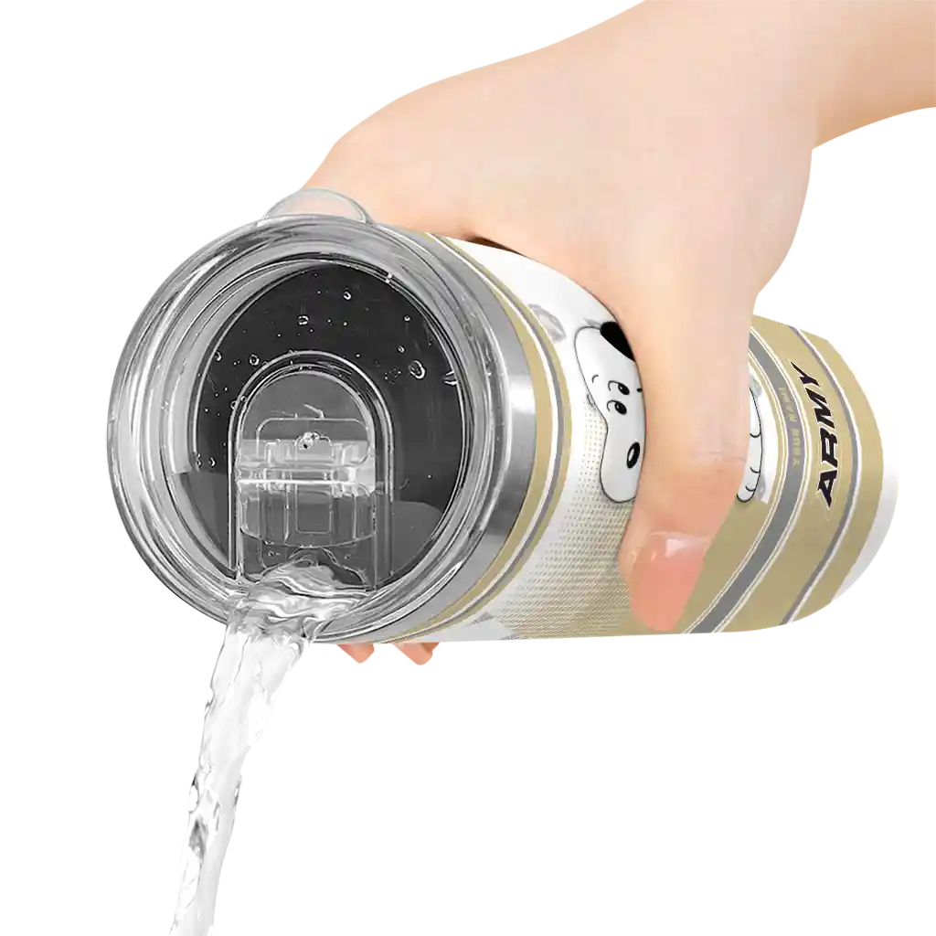 The Custom Army Black Knights Snoopy Dog Gold White Skinny Tumbler tumbler is the perfect way to stay refreshed while showing off your pride for Army Black Knights. With its double-wall insulation, your drinks stay at the right temperature for hours, whether you're enjoying a hot coffee or keeping your iced drink cold. What's inside? You’ll find 1 stainless steel tumbler, 1 clear lid, and 1 removable straw. It's the perfect blend of function and fan spirit! Ergonomically designed for comfort, made from durable stainless steel, and insulated to maintain your drink’s temperature, this tumbler is a must-have for any dedicated NCAA fan.