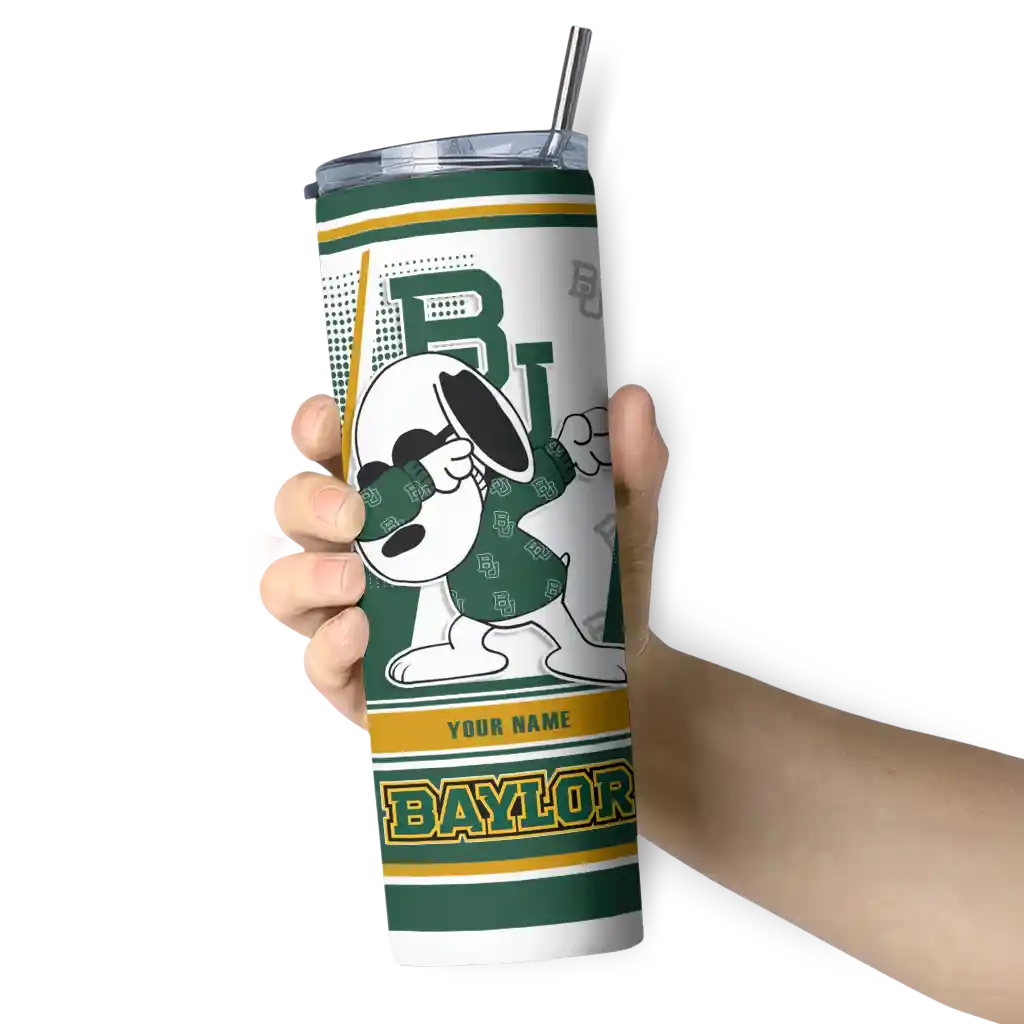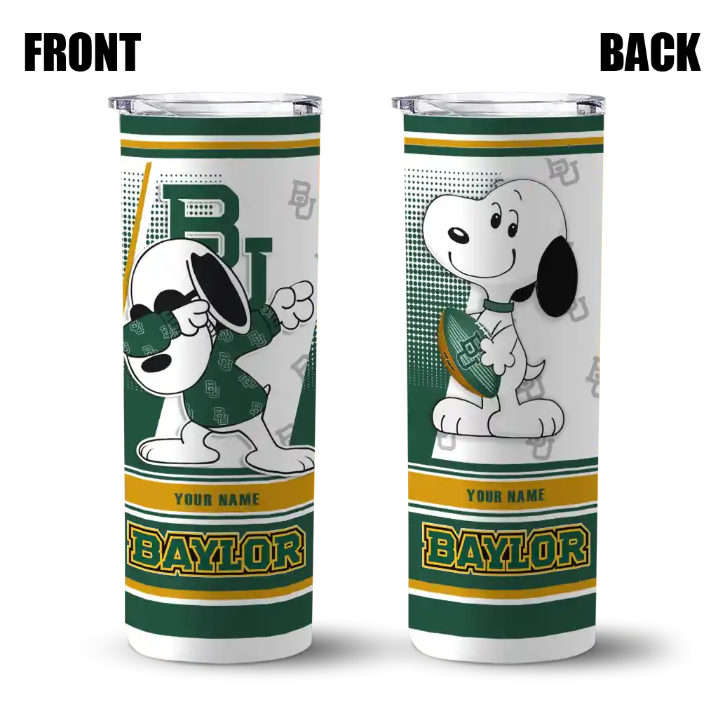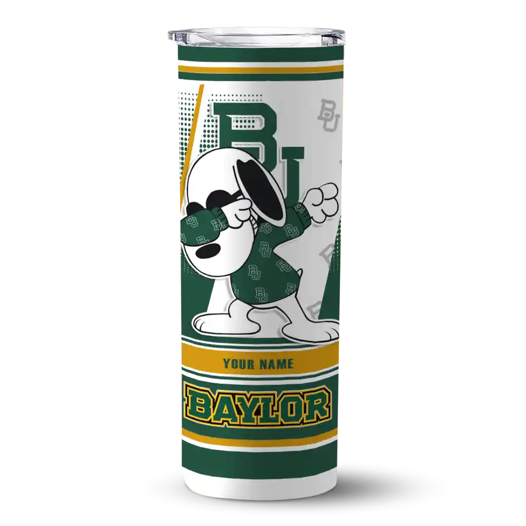 Custom Baylor Bears Snoopy Dog Green White Skinny Tumbler
