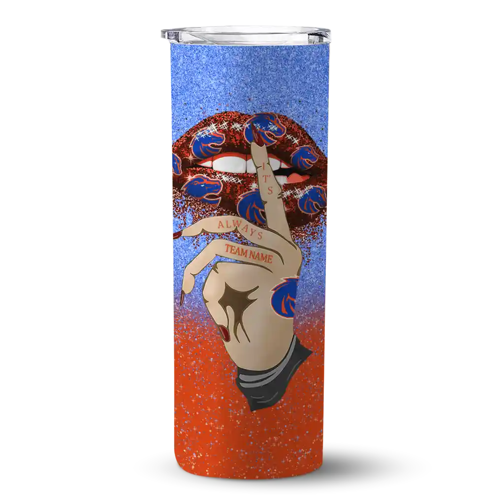 Custom Boise State Broncos Sparkle Lips Orange Skinny Tumbler