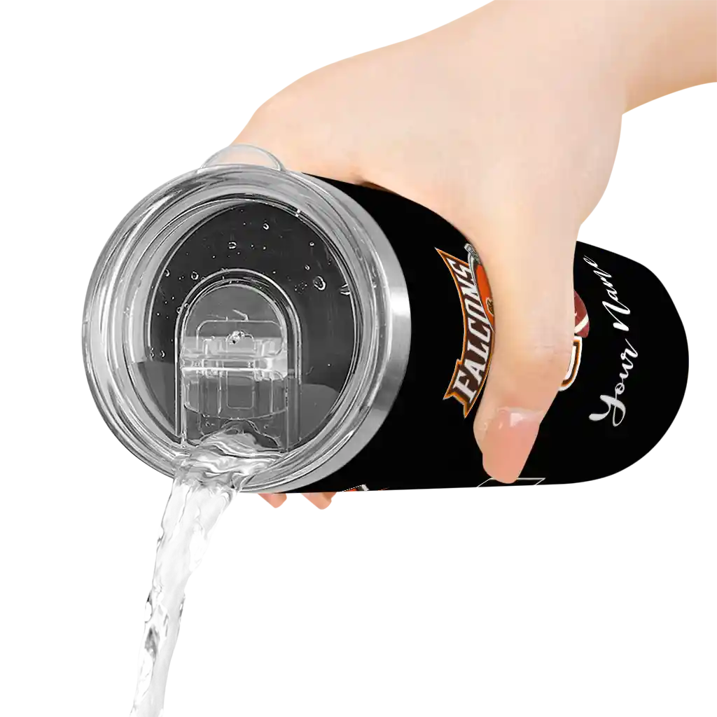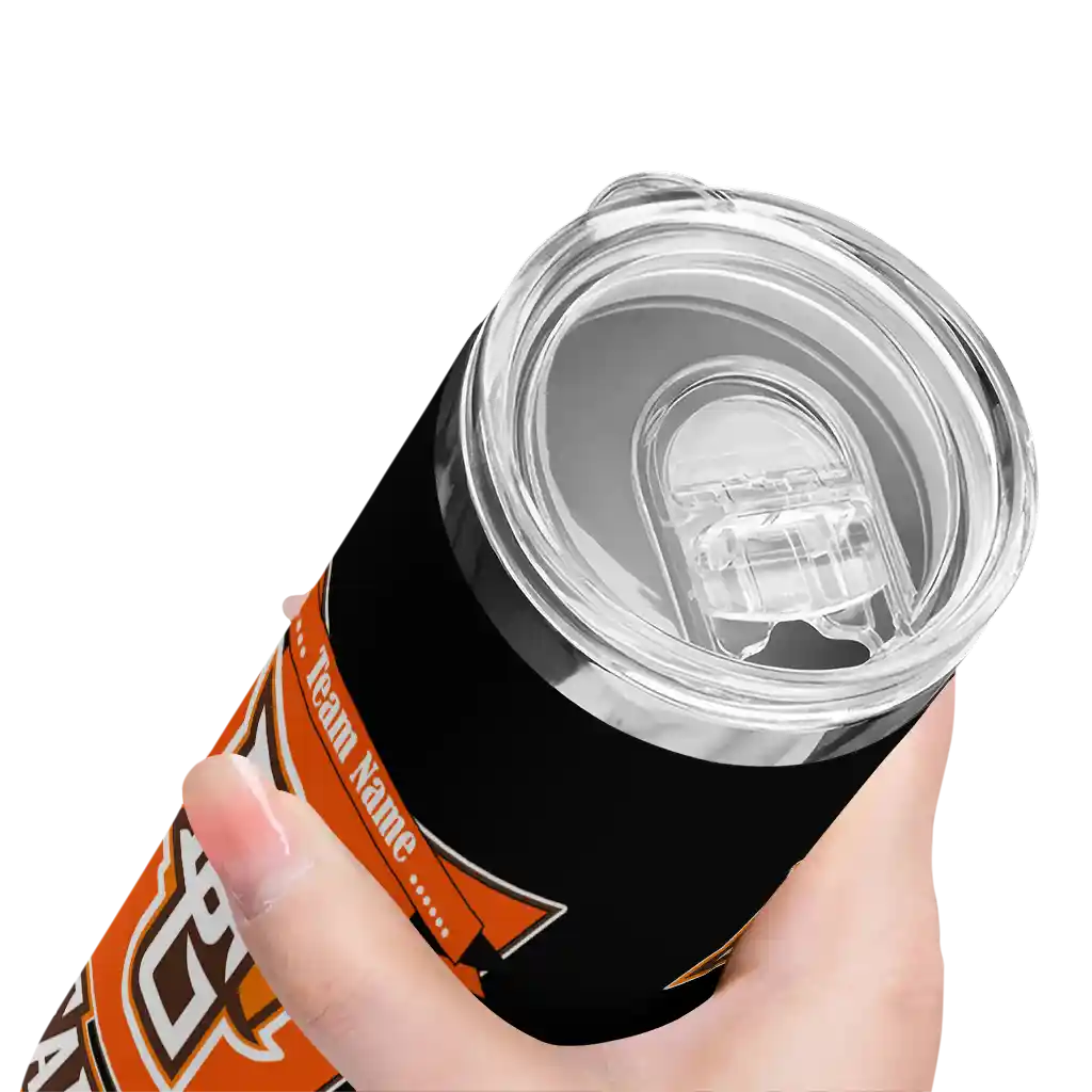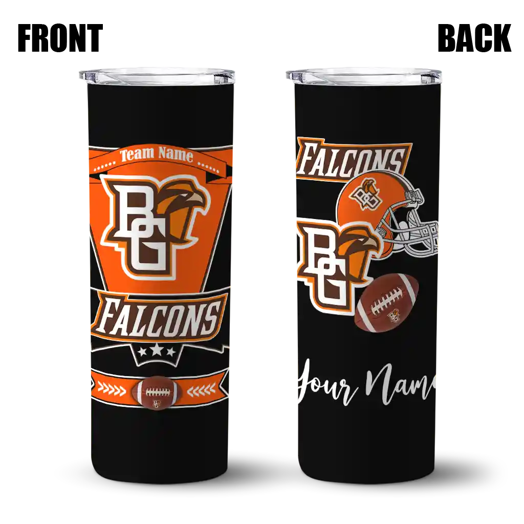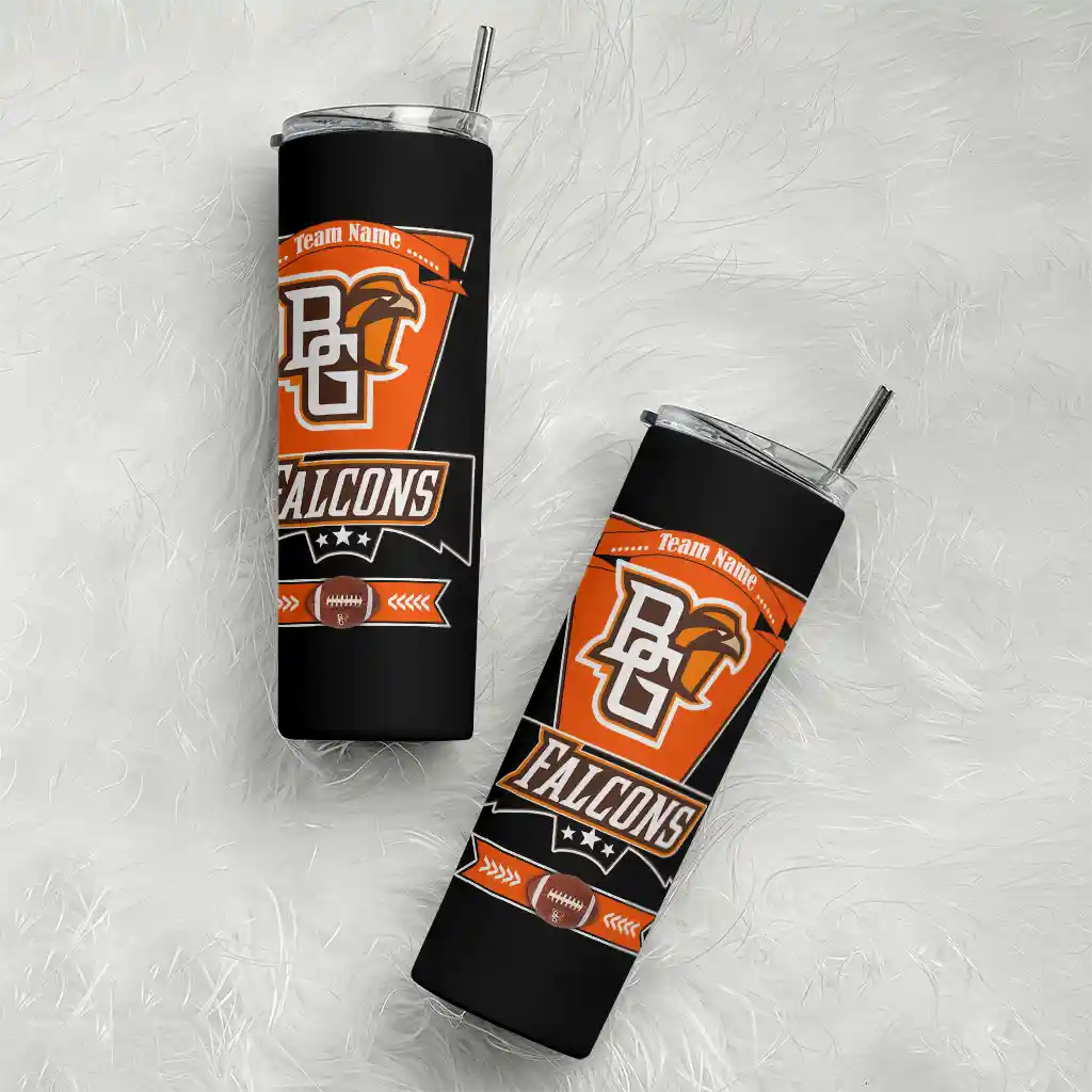 The Custom Bowling Green Falcons Helmet Belt Orange Black Skinny Tumbler tumbler is the perfect way to stay refreshed while showing off your pride for Bowling Green Falcons. With its double-wall insulation, your drinks stay at the right temperature for hours, whether you're enjoying a hot coffee or keeping your iced drink cold. What's inside? You’ll find 1 stainless steel tumbler, 1 clear lid, and 1 removable straw. It's the perfect blend of function and fan spirit! Ergonomically designed for comfort, made from durable stainless steel, and insulated to maintain your drink’s temperature, this tumbler is a must-have for any dedicated NCAA fan.