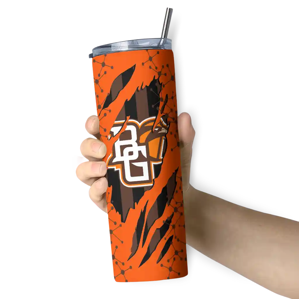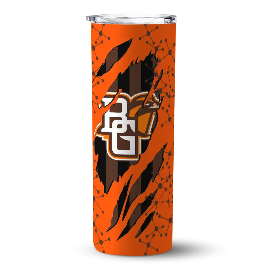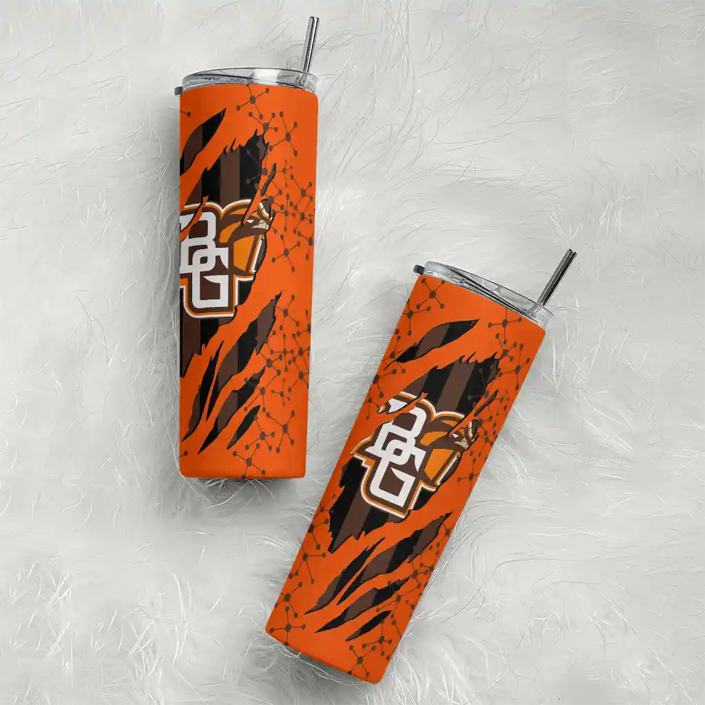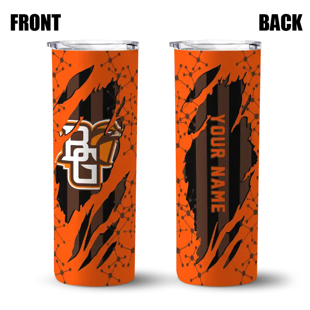 The Custom Bowling Green Falcons Helmet Belt Orange Black Skinny Tumbler tumbler is the perfect way to stay refreshed while showing off your pride for Bowling Green Falcons. With its double-wall insulation, your drinks stay at the right temperature for hours, whether you're enjoying a hot coffee or keeping your iced drink cold. What's inside? You’ll find 1 stainless steel tumbler, 1 clear lid, and 1 removable straw. It's the perfect blend of function and fan spirit! Ergonomically designed for comfort, made from durable stainless steel, and insulated to maintain your drink’s temperature, this tumbler is a must-have for any dedicated NCAA fan.