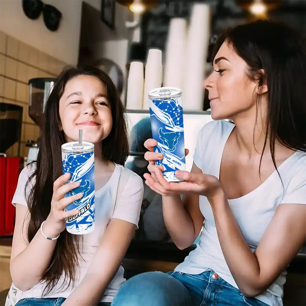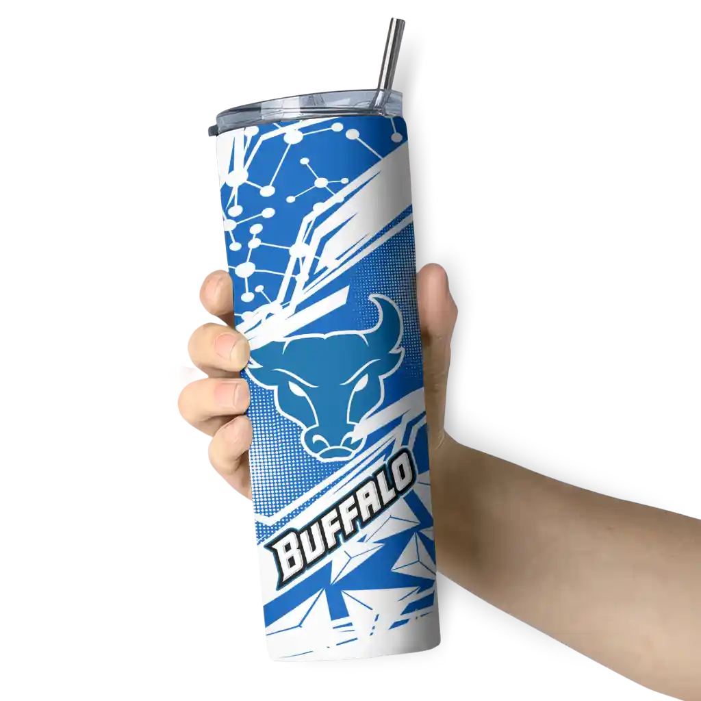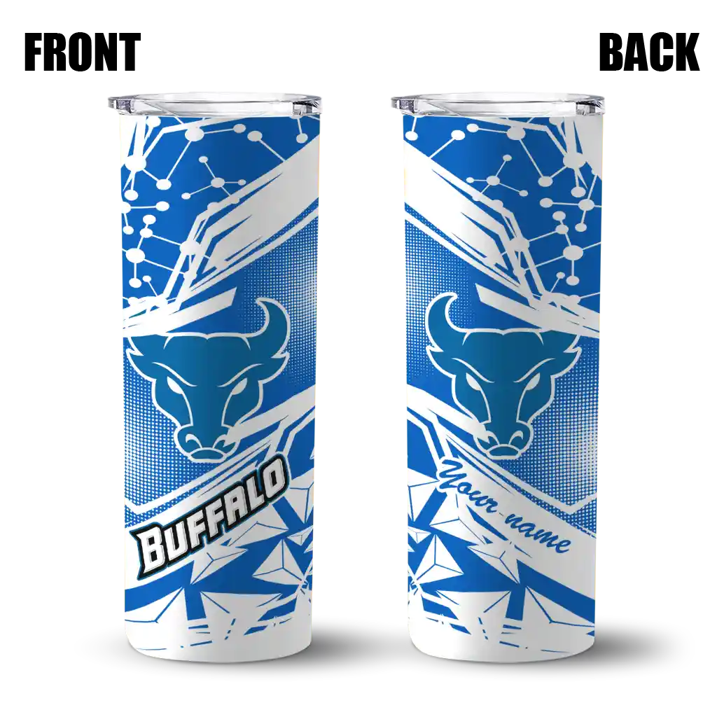 The Custom Buffalo Bulls Helmet Clash Royal Blue Skinny Tumbler tumbler is the perfect way to stay refreshed while showing off your pride for Buffalo Bulls. With its double-wall insulation, your drinks stay at the right temperature for hours, whether you're enjoying a hot coffee or keeping your iced drink cold. What's inside? You’ll find 1 stainless steel tumbler, 1 clear lid, and 1 removable straw. It's the perfect blend of function and fan spirit! Ergonomically designed for comfort, made from durable stainless steel, and insulated to maintain your drink’s temperature, this tumbler is a must-have for any dedicated NCAA fan.