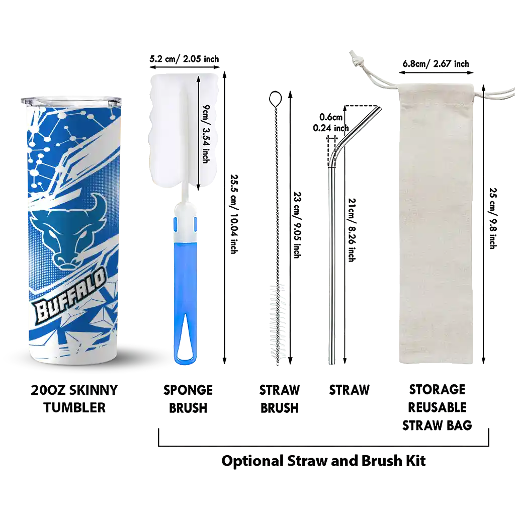 The Custom Buffalo Bulls Stacked Diamond Royal Blue Skinny Tumbler tumbler is the perfect way to stay refreshed while showing off your pride for Buffalo Bulls. With its double-wall insulation, your drinks stay at the right temperature for hours, whether you're enjoying a hot coffee or keeping your iced drink cold. What's inside? You’ll find 1 stainless steel tumbler, 1 clear lid, and 1 removable straw. It's the perfect blend of function and fan spirit! Ergonomically designed for comfort, made from durable stainless steel, and insulated to maintain your drink’s temperature, this tumbler is a must-have for any dedicated NCAA fan.