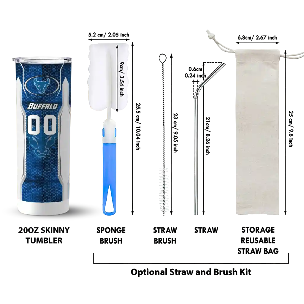 The Custom Buffalo Bulls Stacked Diamond Royal Blue Skinny Tumbler tumbler is the perfect way to stay refreshed while showing off your pride for Buffalo Bulls. With its double-wall insulation, your drinks stay at the right temperature for hours, whether you're enjoying a hot coffee or keeping your iced drink cold. What's inside? You’ll find 1 stainless steel tumbler, 1 clear lid, and 1 removable straw. It's the perfect blend of function and fan spirit! Ergonomically designed for comfort, made from durable stainless steel, and insulated to maintain your drink’s temperature, this tumbler is a must-have for any dedicated NCAA fan.