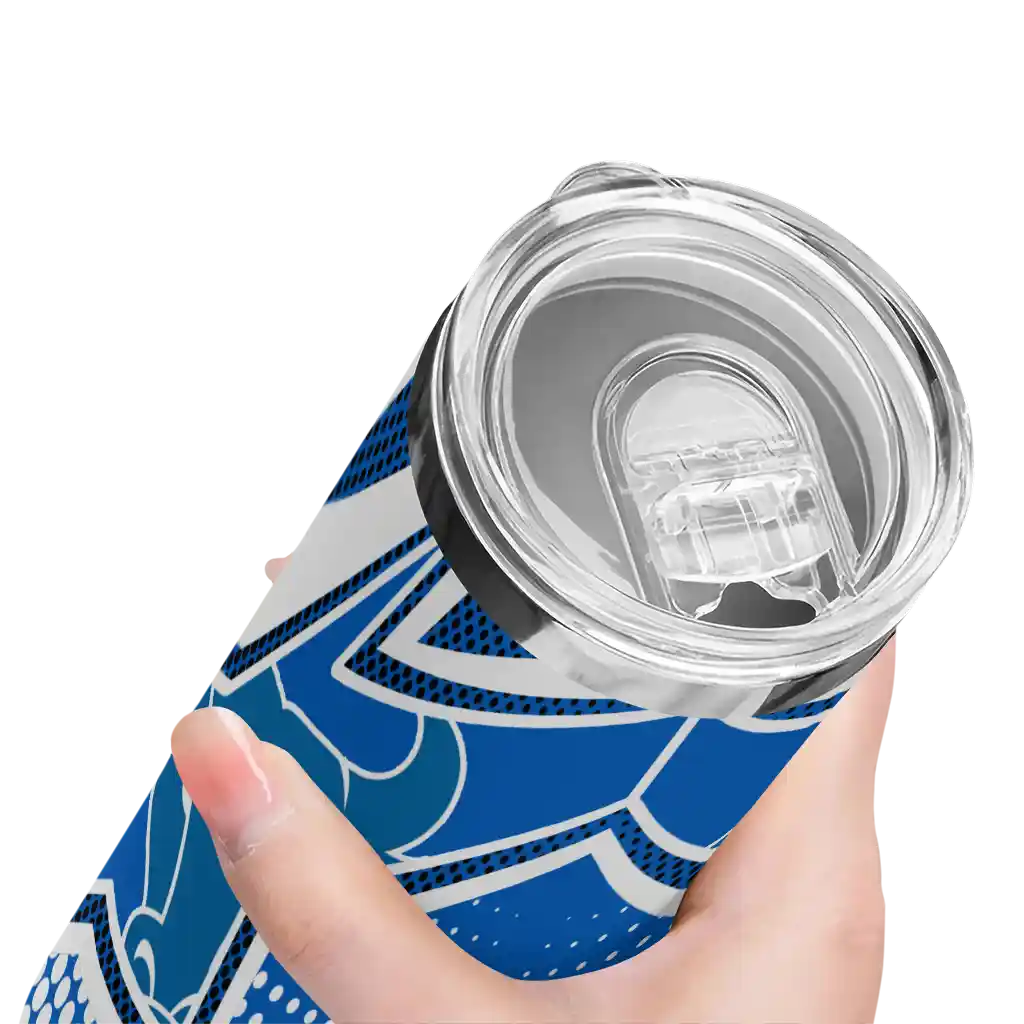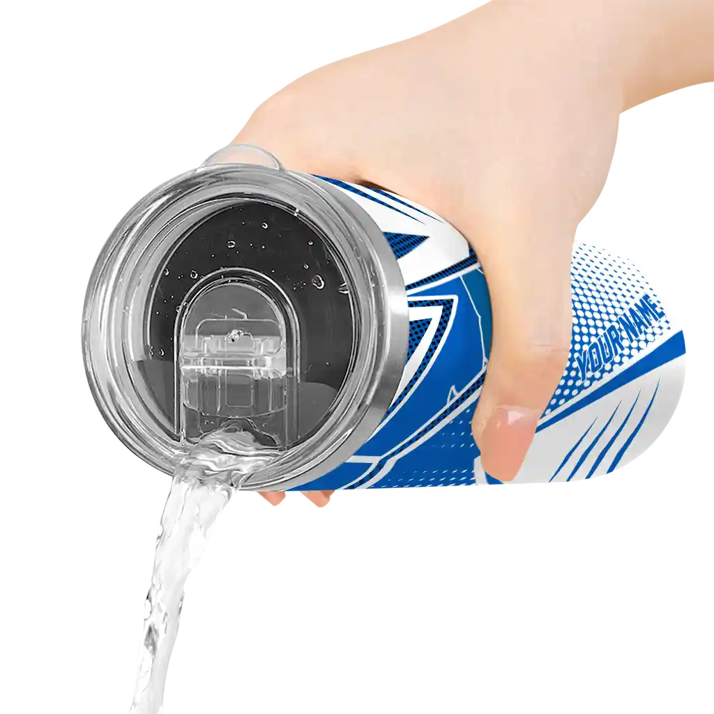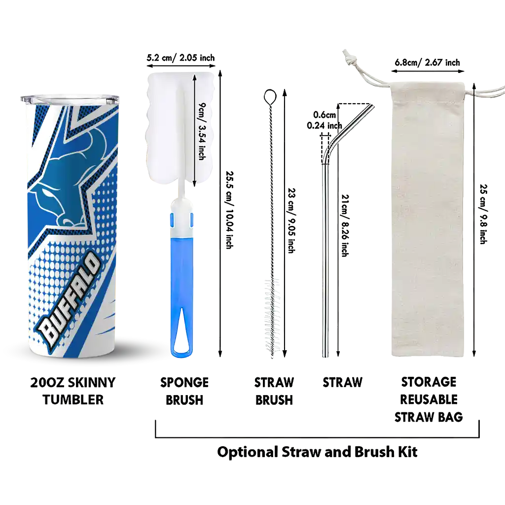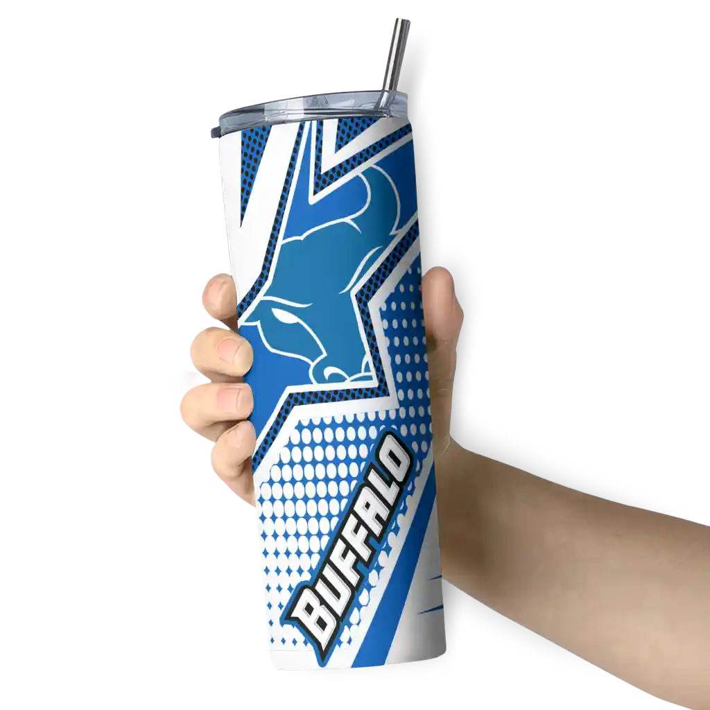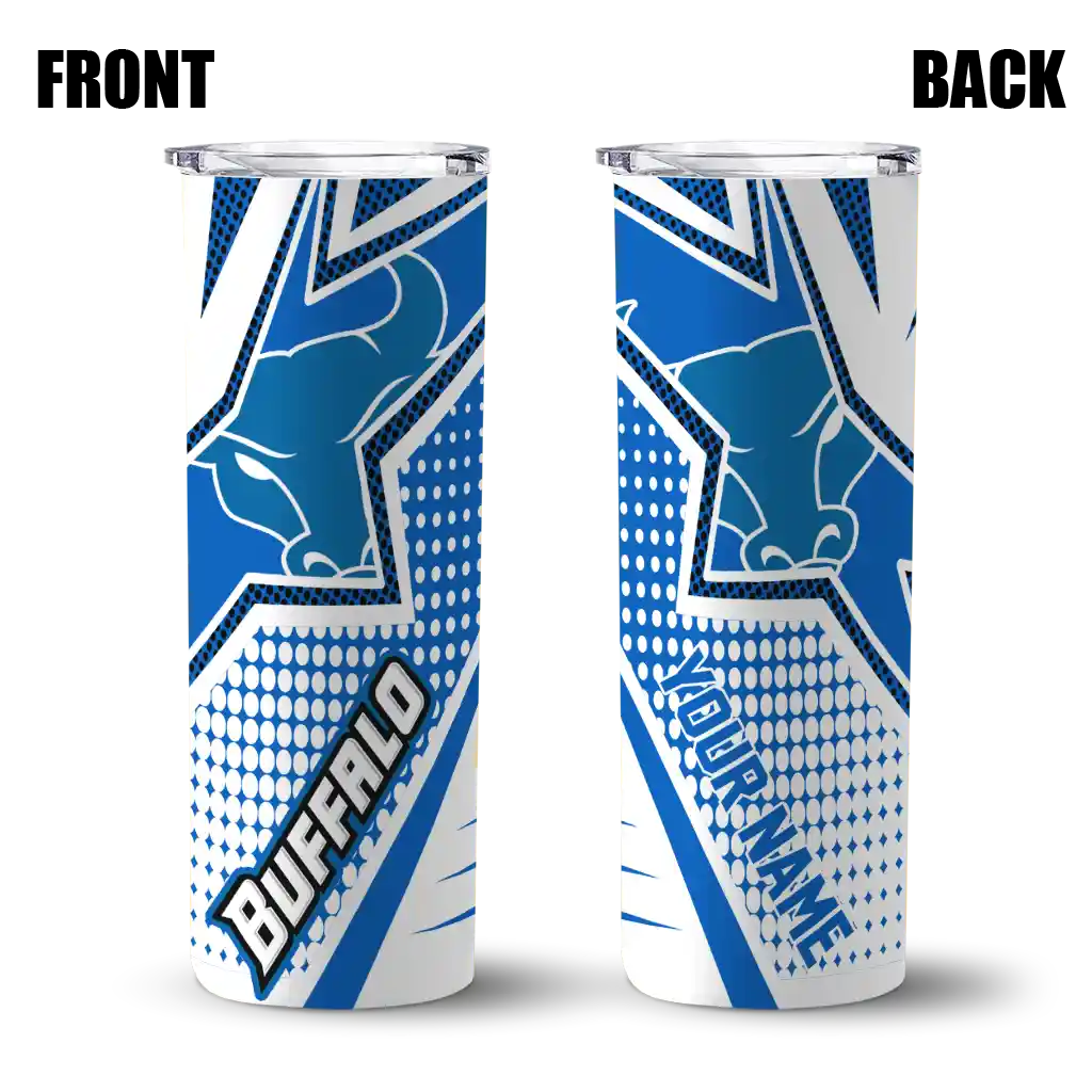 The Custom Buffalo Bulls Web Stripes Royal Blue White Skinny Tumbler tumbler is the perfect way to stay refreshed while showing off your pride for Buffalo Bulls. With its double-wall insulation, your drinks stay at the right temperature for hours, whether you're enjoying a hot coffee or keeping your iced drink cold. What's inside? You’ll find 1 stainless steel tumbler, 1 clear lid, and 1 removable straw. It's the perfect blend of function and fan spirit! Ergonomically designed for comfort, made from durable stainless steel, and insulated to maintain your drink’s temperature, this tumbler is a must-have for any dedicated NCAA fan.