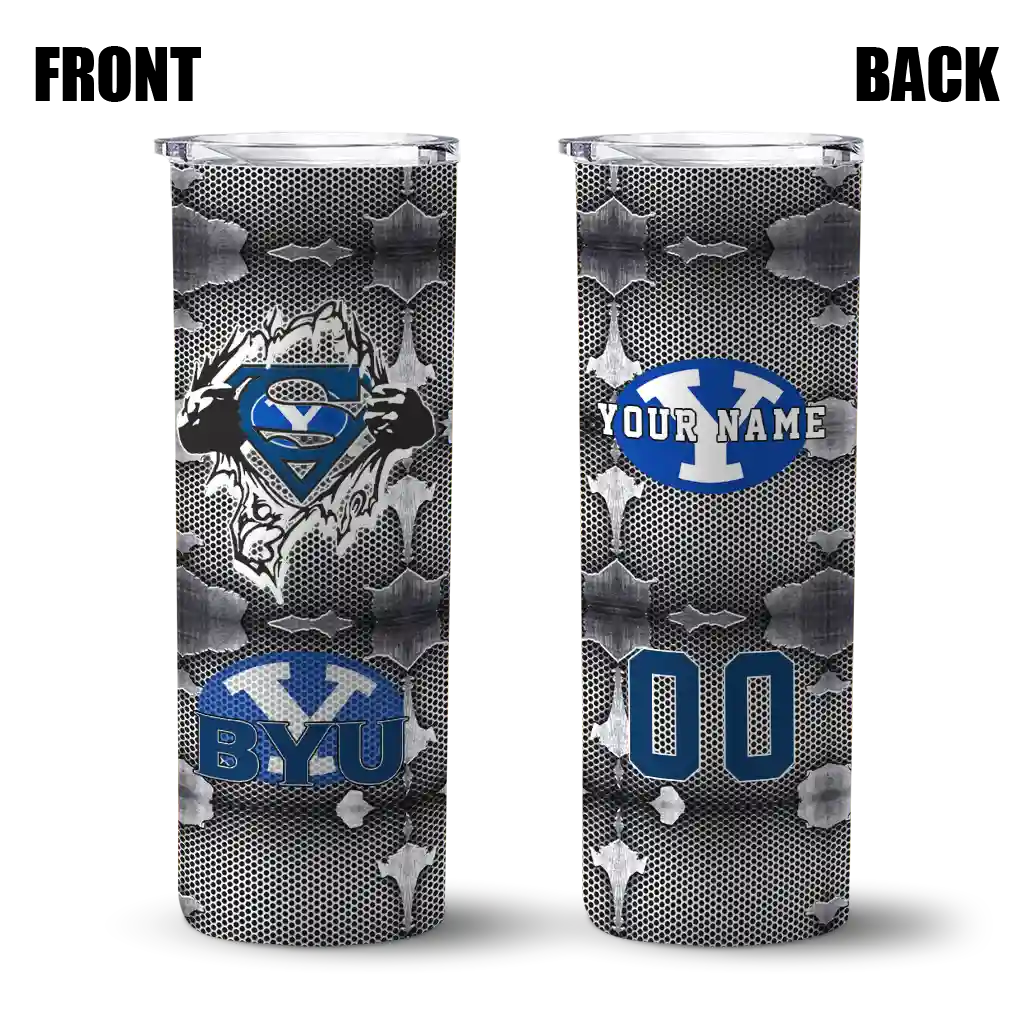 The Custom BYU Cougars Chevron V Blue Gray Skinny Tumbler tumbler is the perfect way to stay refreshed while showing off your pride for BYU Cougars. With its double-wall insulation, your drinks stay at the right temperature for hours, whether you're enjoying a hot coffee or keeping your iced drink cold. What's inside? You’ll find 1 stainless steel tumbler, 1 clear lid, and 1 removable straw. It's the perfect blend of function and fan spirit! Ergonomically designed for comfort, made from durable stainless steel, and insulated to maintain your drink’s temperature, this tumbler is a must-have for any dedicated NCAA fan.