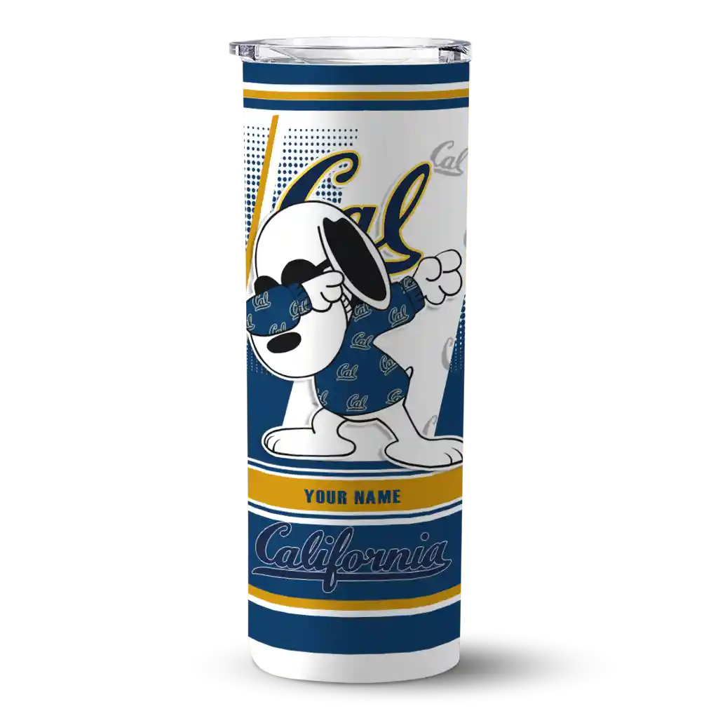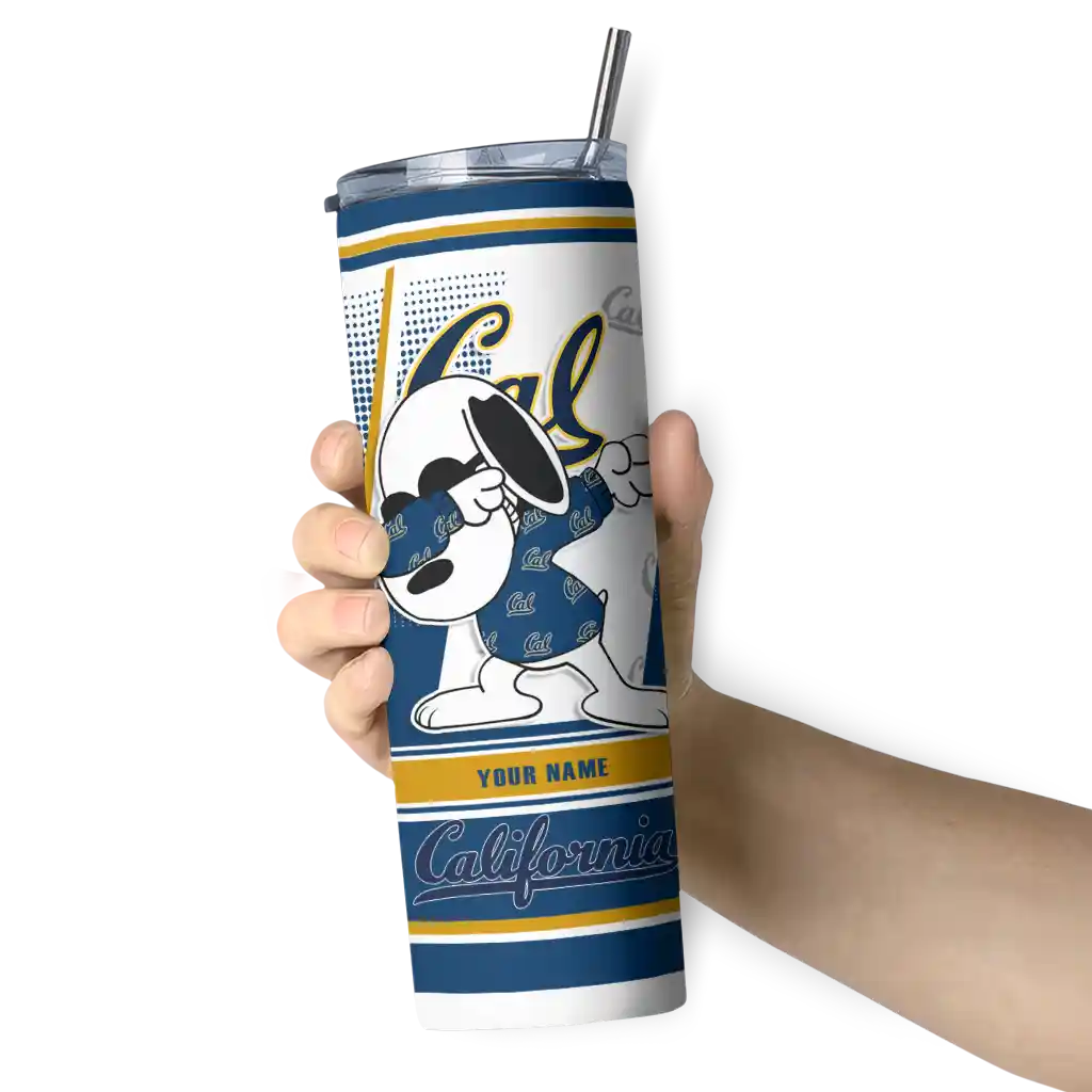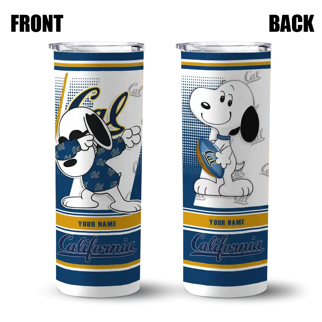 Custom California Golden Bears Snoopy Dog Blue White Skinny Tumbler