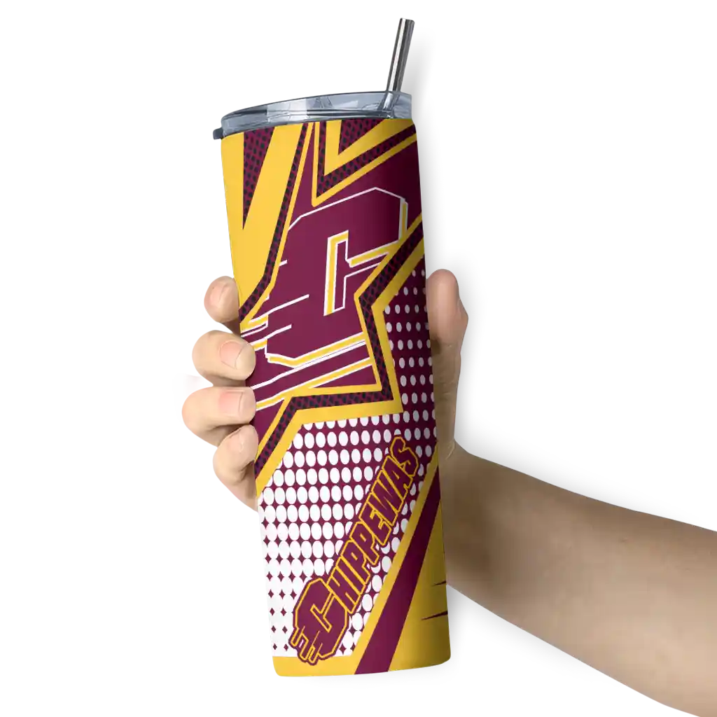 Made from premium stainless steel, this tumbler is built to last. The bold Central Michigan Chippewas logo proudly represents your team, while the ergonomic design fits comfortably in your hand for easy carrying. Whether you're cheering in the stands, catching up with friends, or just out and about, this tumbler is the perfect fan accessory, combining style and function to keep you hydrated in true NCAA spirit.