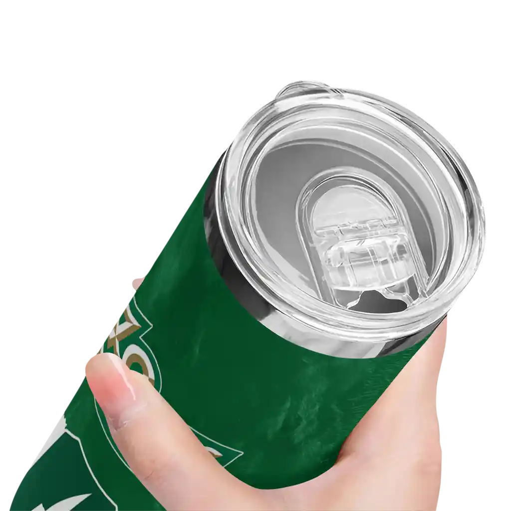 The Custom Charlotte 49ers Torn Band Green White Skinny Tumbler tumbler is the perfect way to stay refreshed while showing off your pride for Charlotte 49ers. With its double-wall insulation, your drinks stay at the right temperature for hours, whether you're enjoying a hot coffee or keeping your iced drink cold. What's inside? You’ll find 1 stainless steel tumbler, 1 clear lid, and 1 removable straw. It's the perfect blend of function and fan spirit! Ergonomically designed for comfort, made from durable stainless steel, and insulated to maintain your drink’s temperature, this tumbler is a must-have for any dedicated NCAA fan.