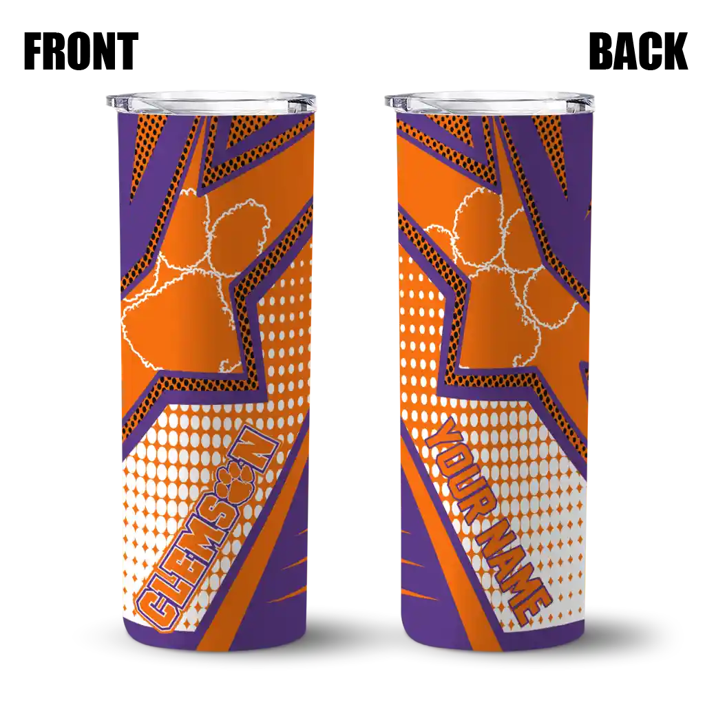 No question about it—the Custom Clemson Tigers Claw Cut Orange Black Curved Tumbler is the ultimate way to stay refreshed while rocking your Clemson Tigers pride. From the stadium to your tailgate, or just chilling at home, this sleek tumbler makes sure you stay hydrated in style. What’s in the box? A stainless steel tumbler, clear lid, and removable straw—all the essentials for keeping your favorite drinks on point!