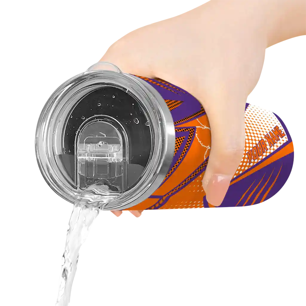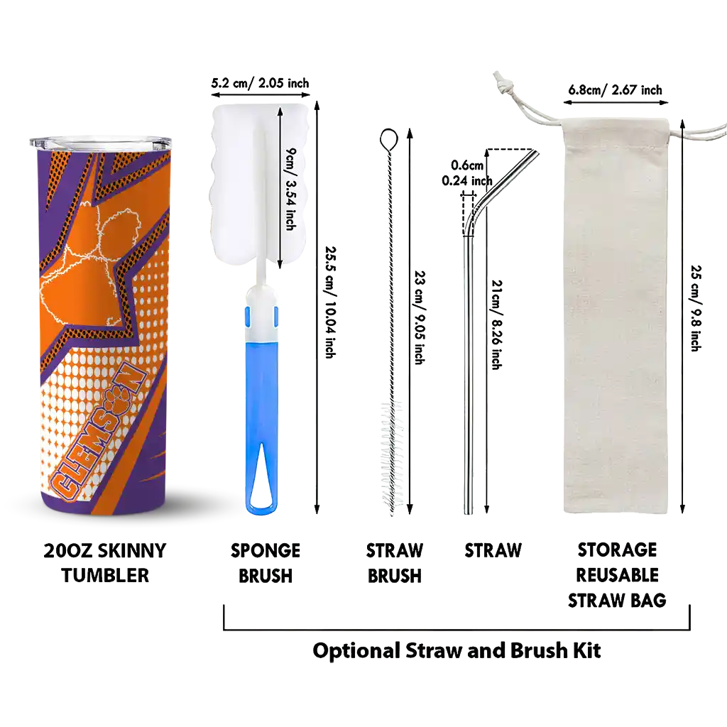 The Custom Clemson Tigers Web Stripes Orange White Skinny Tumbler tumbler is the perfect way to stay refreshed while showing off your pride for Clemson Tigers. With its double-wall insulation, your drinks stay at the right temperature for hours, whether you're enjoying a hot coffee or keeping your iced drink cold. What's inside? You’ll find 1 stainless steel tumbler, 1 clear lid, and 1 removable straw. It's the perfect blend of function and fan spirit! Ergonomically designed for comfort, made from durable stainless steel, and insulated to maintain your drink’s temperature, this tumbler is a must-have for any dedicated NCAA fan.