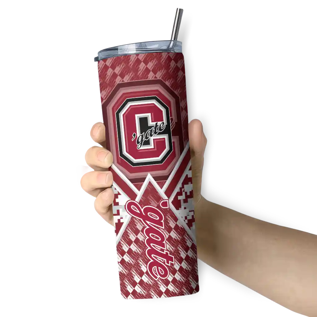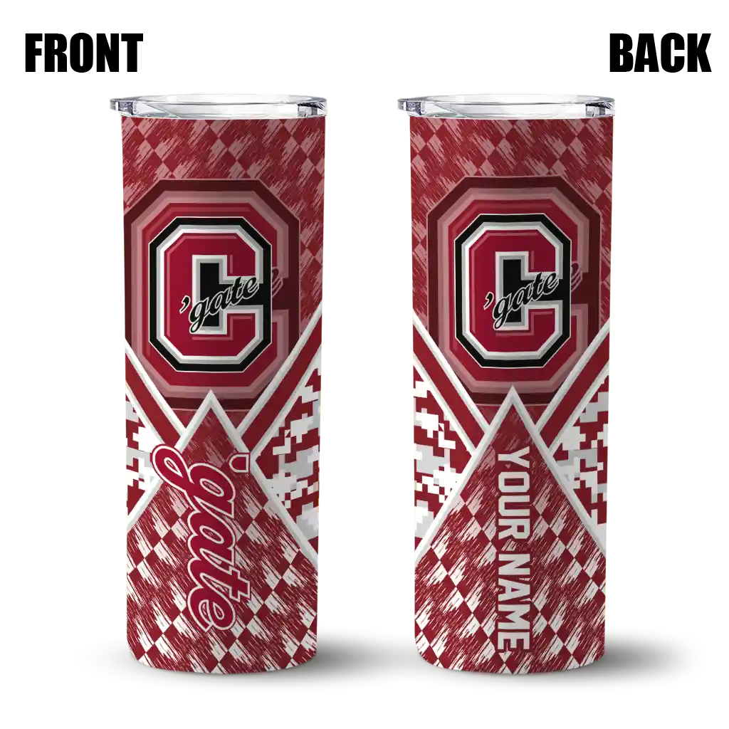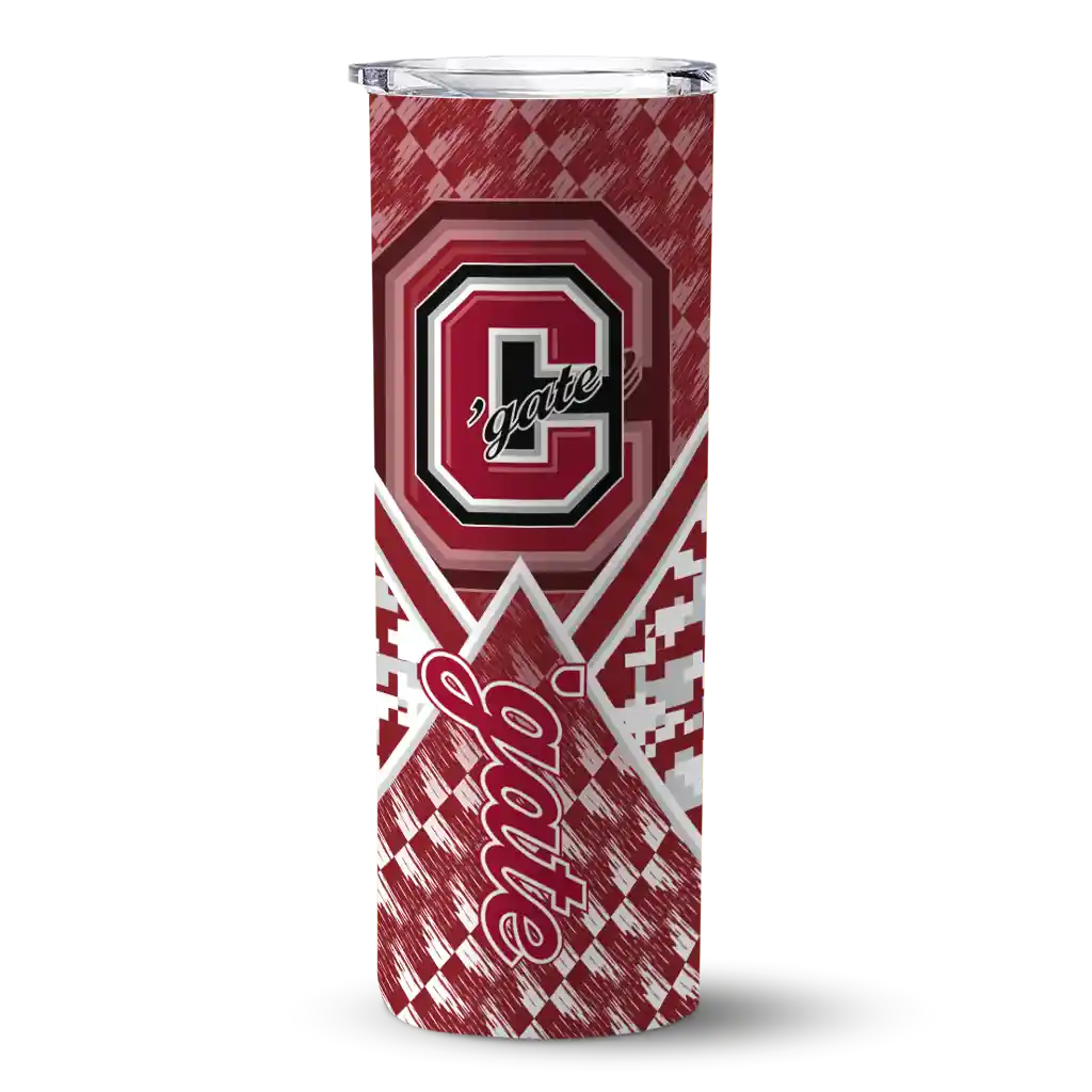 The Custom Colgate Raiders Monogram Burst Maroon White Skinny Tumbler tumbler is the perfect way to stay refreshed while showing off your pride for Colgate Raiders. With its double-wall insulation, your drinks stay at the right temperature for hours, whether you're enjoying a hot coffee or keeping your iced drink cold. What's inside? You’ll find 1 stainless steel tumbler, 1 clear lid, and 1 removable straw. It's the perfect blend of function and fan spirit! Ergonomically designed for comfort, made from durable stainless steel, and insulated to maintain your drink’s temperature, this tumbler is a must-have for any dedicated NCAA fan.