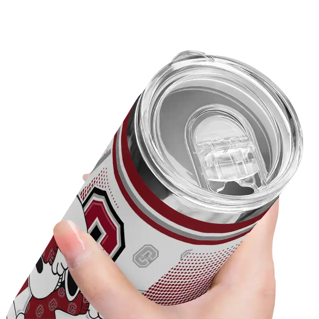 The Custom Colgate Raiders Snoopy Dog Maroon White Skinny Tumbler tumbler is the perfect way to stay refreshed while showing off your pride for Colgate Raiders. With its double-wall insulation, your drinks stay at the right temperature for hours, whether you're enjoying a hot coffee or keeping your iced drink cold. What's inside? You’ll find 1 stainless steel tumbler, 1 clear lid, and 1 removable straw. It's the perfect blend of function and fan spirit! Ergonomically designed for comfort, made from durable stainless steel, and insulated to maintain your drink’s temperature, this tumbler is a must-have for any dedicated NCAA fan.