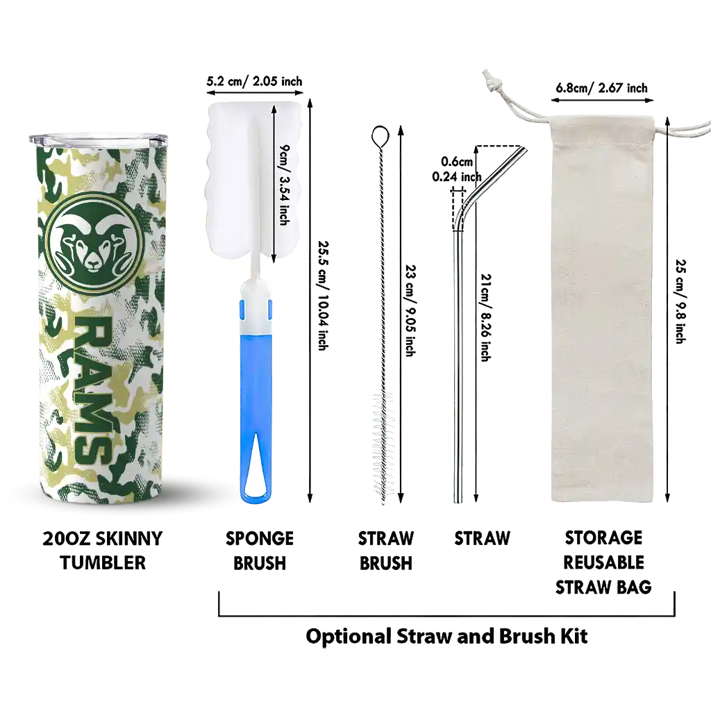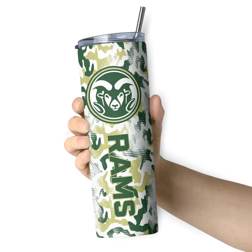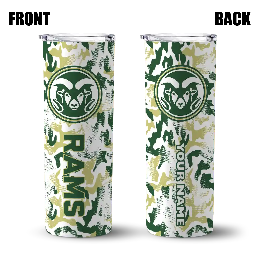 The Customized Colorado State Rams Camo Streak Green Skinny Tumbler tumbler is the perfect way to stay refreshed while showing off your pride for Colorado State Rams. With its double-wall insulation, your drinks stay at the right temperature for hours, whether you're enjoying a hot coffee or keeping your iced drink cold. What's inside? You’ll find 1 stainless steel tumbler, 1 clear lid, and 1 removable straw. It's the perfect blend of function and fan spirit! Ergonomically designed for comfort, made from durable stainless steel, and insulated to maintain your drink’s temperature, this tumbler is a must-have for any dedicated NCAA fan.