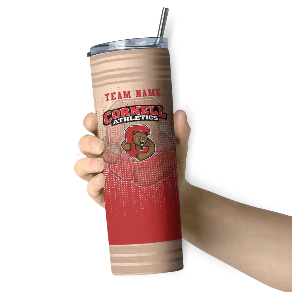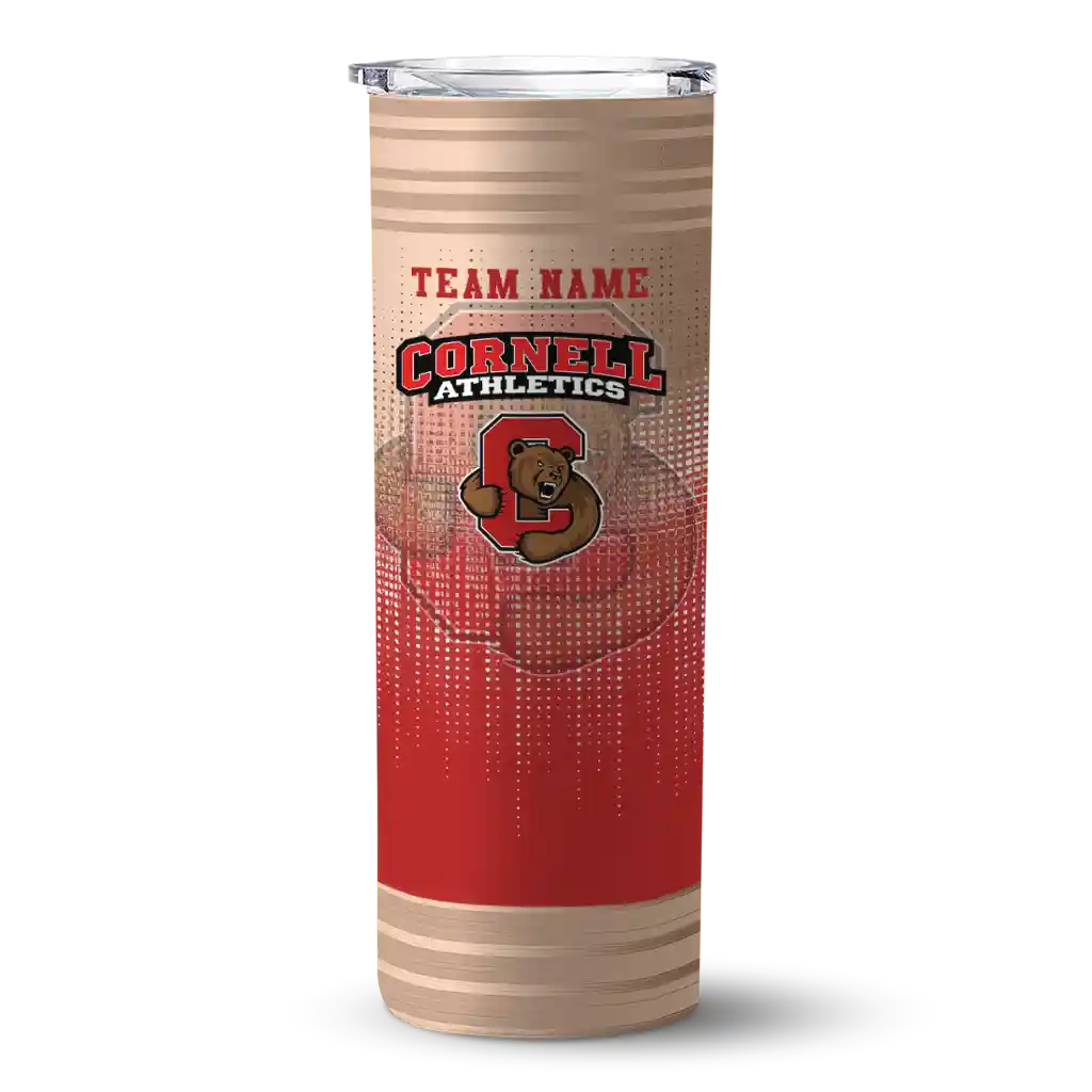 The Custom Cornell Big Red Swirl Texture Red Skinny Tumbler tumbler is the perfect way to stay refreshed while showing off your pride for Cornell Big Red. With its double-wall insulation, your drinks stay at the right temperature for hours, whether you're enjoying a hot coffee or keeping your iced drink cold. What's inside? You’ll find 1 stainless steel tumbler, 1 clear lid, and 1 removable straw. It's the perfect blend of function and fan spirit! Ergonomically designed for comfort, made from durable stainless steel, and insulated to maintain your drink’s temperature, this tumbler is a must-have for any dedicated NCAA fan.