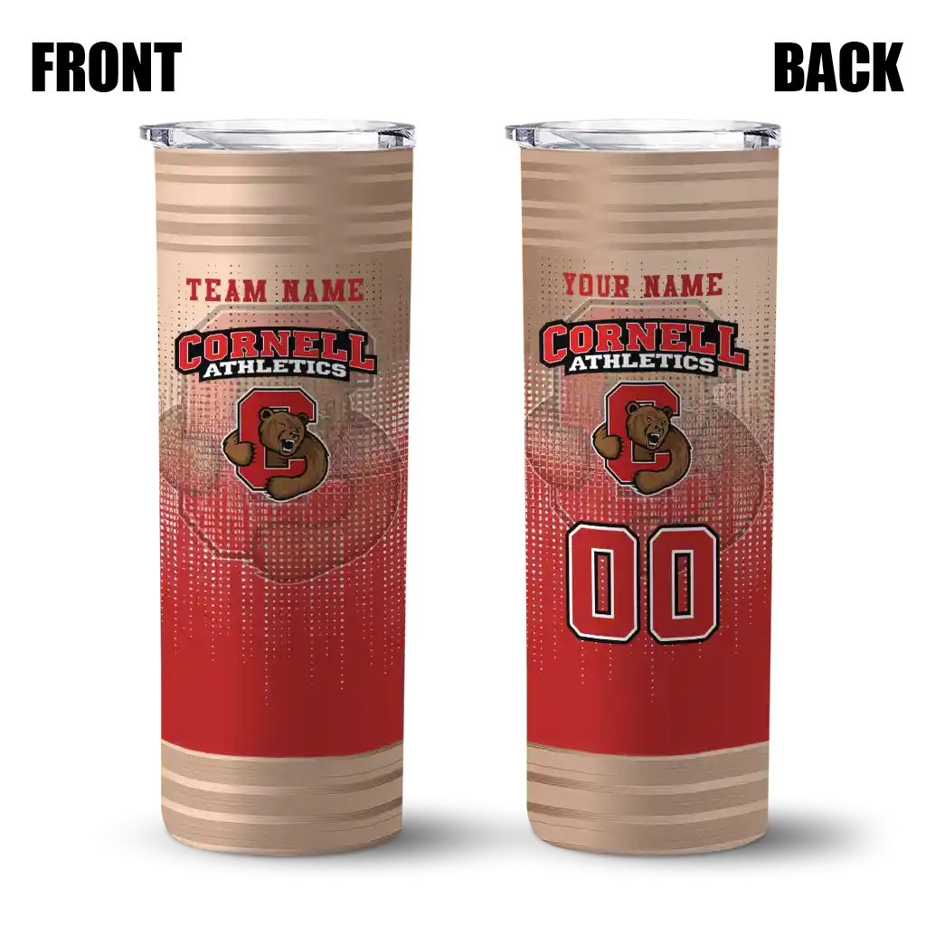 The Personalized Cornell Big Red Helmet Clash Red Skinny Tumbler tumbler is the perfect way to stay refreshed while showing off your pride for Cornell Big Red. With its double-wall insulation, your drinks stay at the right temperature for hours, whether you're enjoying a hot coffee or keeping your iced drink cold. What's inside? You’ll find 1 stainless steel tumbler, 1 clear lid, and 1 removable straw. It's the perfect blend of function and fan spirit! Ergonomically designed for comfort, made from durable stainless steel, and insulated to maintain your drink’s temperature, this tumbler is a must-have for any dedicated NCAA fan.
