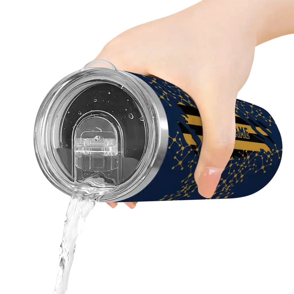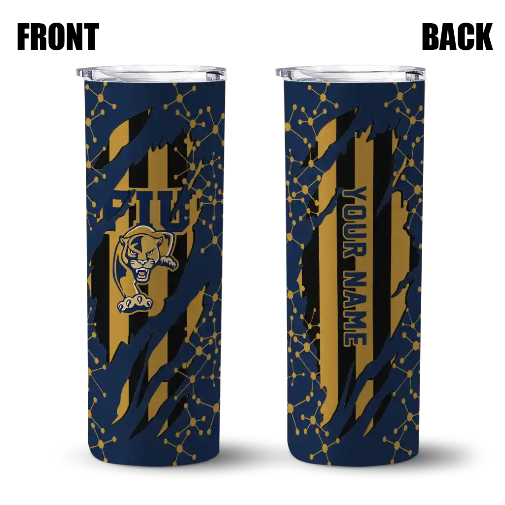 The Custom FIU Panthers Star Pop Blue Black Skinny Tumbler tumbler is the perfect way to stay refreshed while showing off your pride for FIU Panthers. With its double-wall insulation, your drinks stay at the right temperature for hours, whether you're enjoying a hot coffee or keeping your iced drink cold. What's inside? You’ll find 1 stainless steel tumbler, 1 clear lid, and 1 removable straw. It's the perfect blend of function and fan spirit! Ergonomically designed for comfort, made from durable stainless steel, and insulated to maintain your drink’s temperature, this tumbler is a must-have for any dedicated NCAA fan.