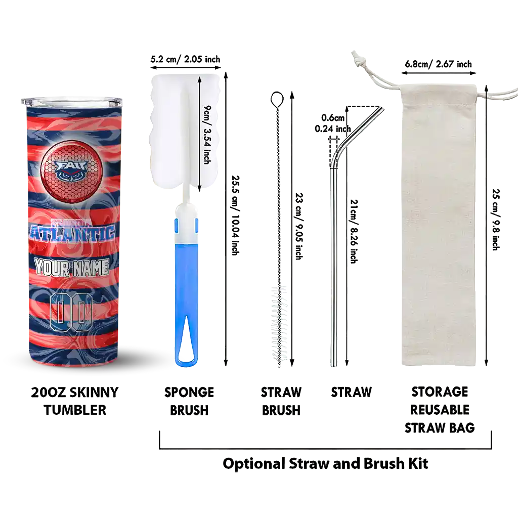 No question about it—the Customized Florida Atlantic Owls Abstract Paths Blue Curved Tumbler is the ultimate way to stay refreshed while rocking your Florida Atlantic Owls pride. From the stadium to your tailgate, or just chilling at home, this sleek tumbler makes sure you stay hydrated in style. What’s in the box? A stainless steel tumbler, clear lid, and removable straw—all the essentials for keeping your favorite drinks on point!