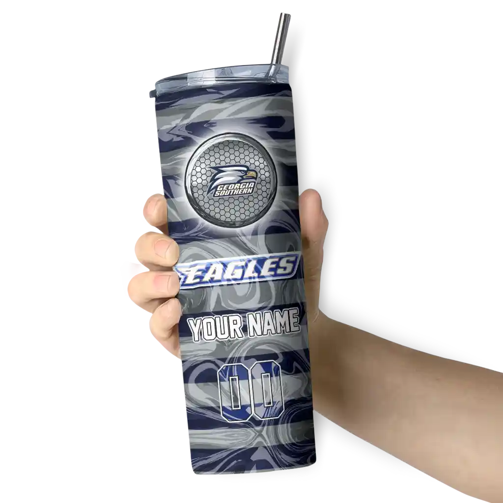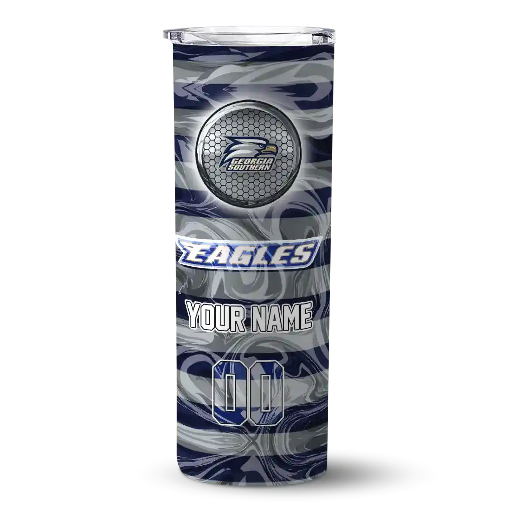 No question about it—the Custom Georgia Southern Eagles Hex Texture Blue Curved Tumbler is the ultimate way to stay refreshed while rocking your Georgia Southern Eagles pride. From the stadium to your tailgate, or just chilling at home, this sleek tumbler makes sure you stay hydrated in style. What’s in the box? A stainless steel tumbler, clear lid, and removable straw—all the essentials for keeping your favorite drinks on point!